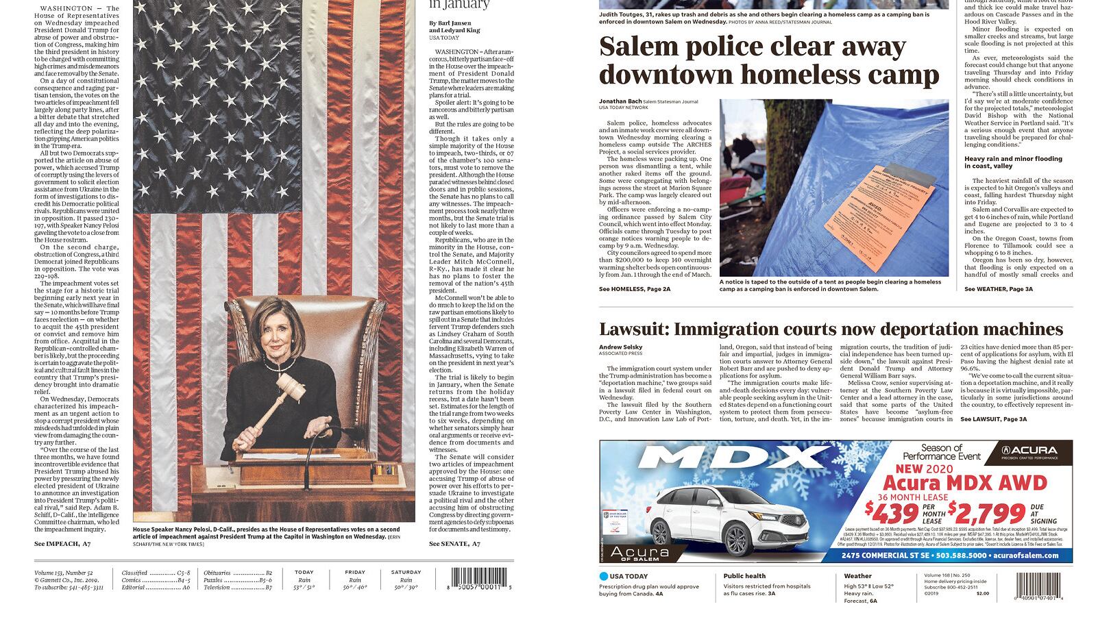 Here's how Trump's impeachment was announced by various dailies across the state. The photos are courtesy of Scott Stoddard, editor of the Grants Pass Daily Courier, who compiled them this morning.