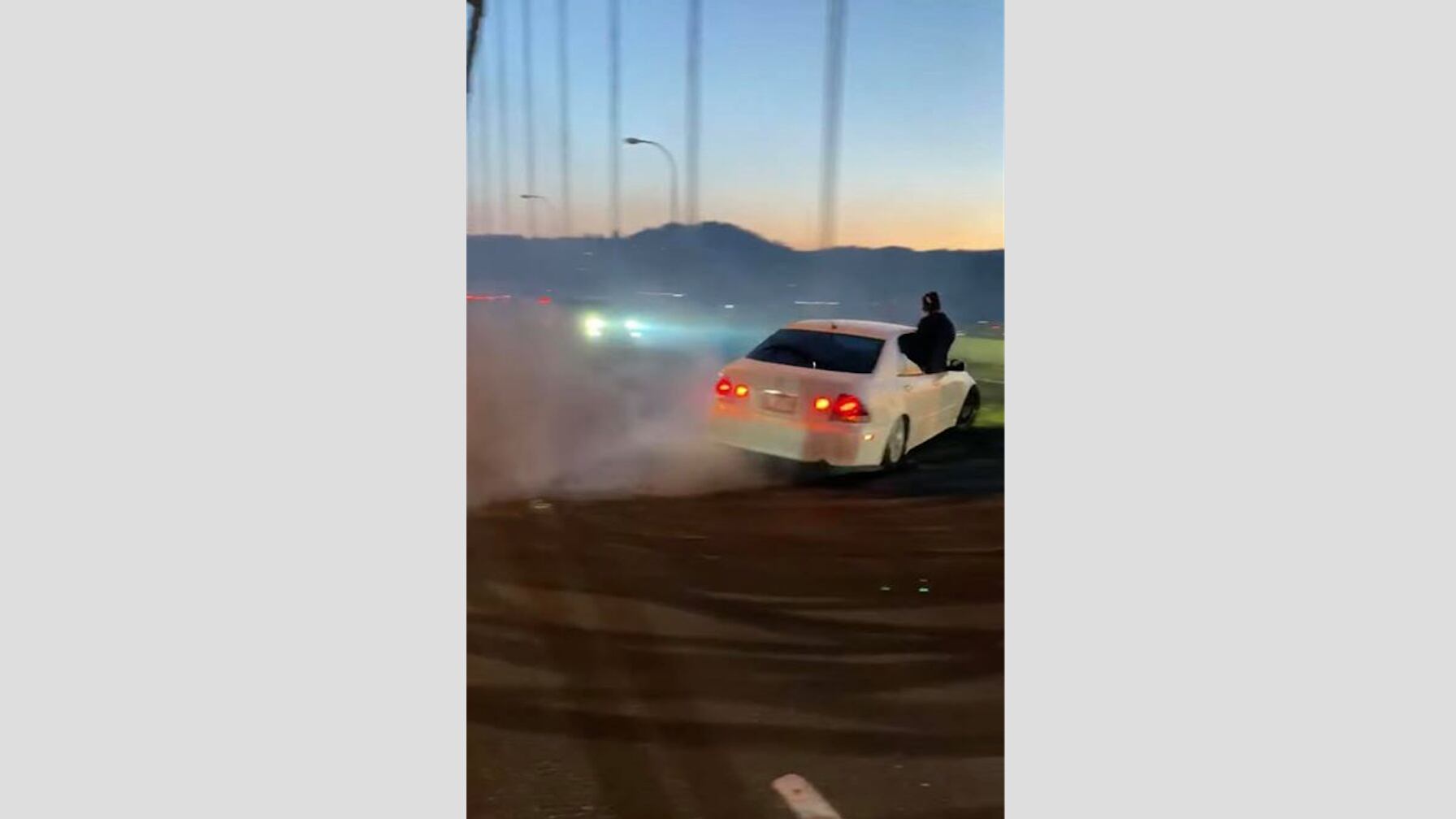 FOX 12 and KGW photojournalist Eric Patterson shared footage from a widely circulated, now-deleted Facebook video depicting cars doing doughnuts—that is, skidding in circles at high speeds—on the upper deck as mostly young men record drivers on their phones.