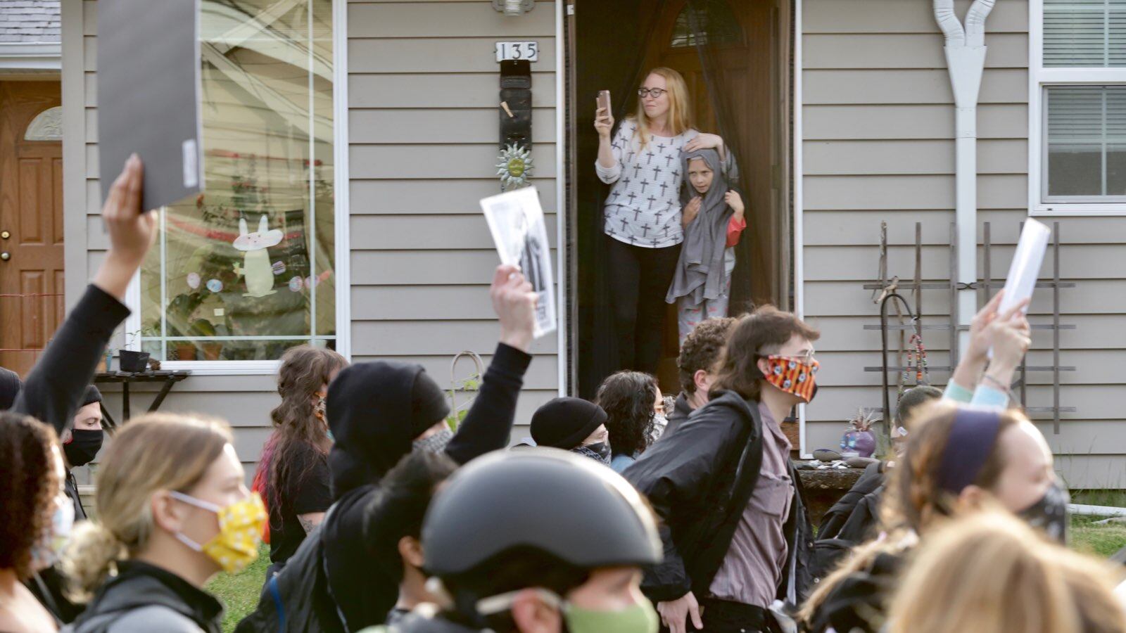 As a citywide curfew approached, Portlanders gathered en masse on two sides of the Willamette River to protest police brutality against black citizens. One group gathered in front of the Multnomah County Justice Center, while another, even larger, marched through the leafy streets of the Laurelhurst neighborhood.