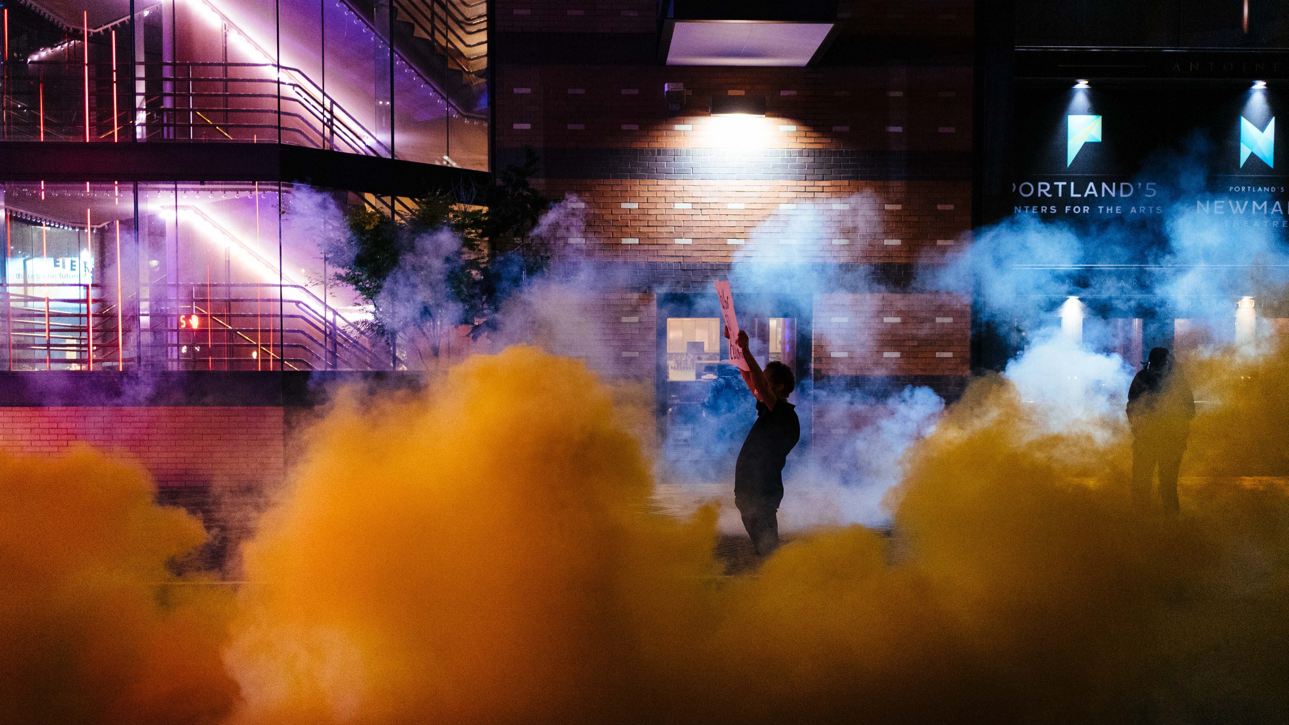 Portland's uprising has been like a tale of two protests: One group gathers outside Revolution Hall, followed by a march and speeches, and another group congregates at the fence outside the downtown Multnomah County Justice Center, where they come face to face with police in full riot gear.