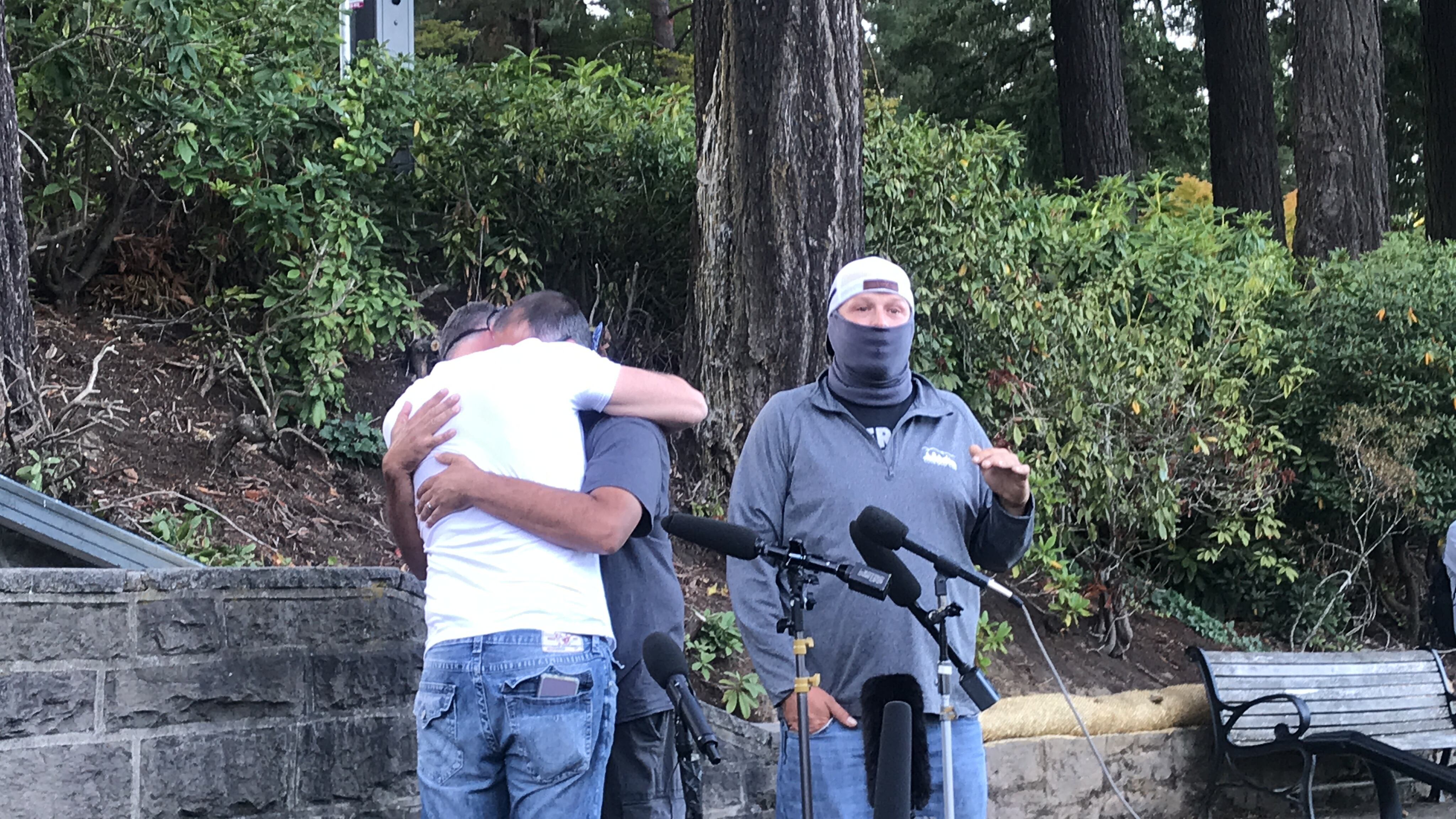 Standing on the Rose Garden steps in Washington Park on Monday evening, Danielson's friends Michael Hamilton and Luke Carrillo said he had been falsely portrayed as a violent militant because of his association with the conservative protest group Patriot Prayer.