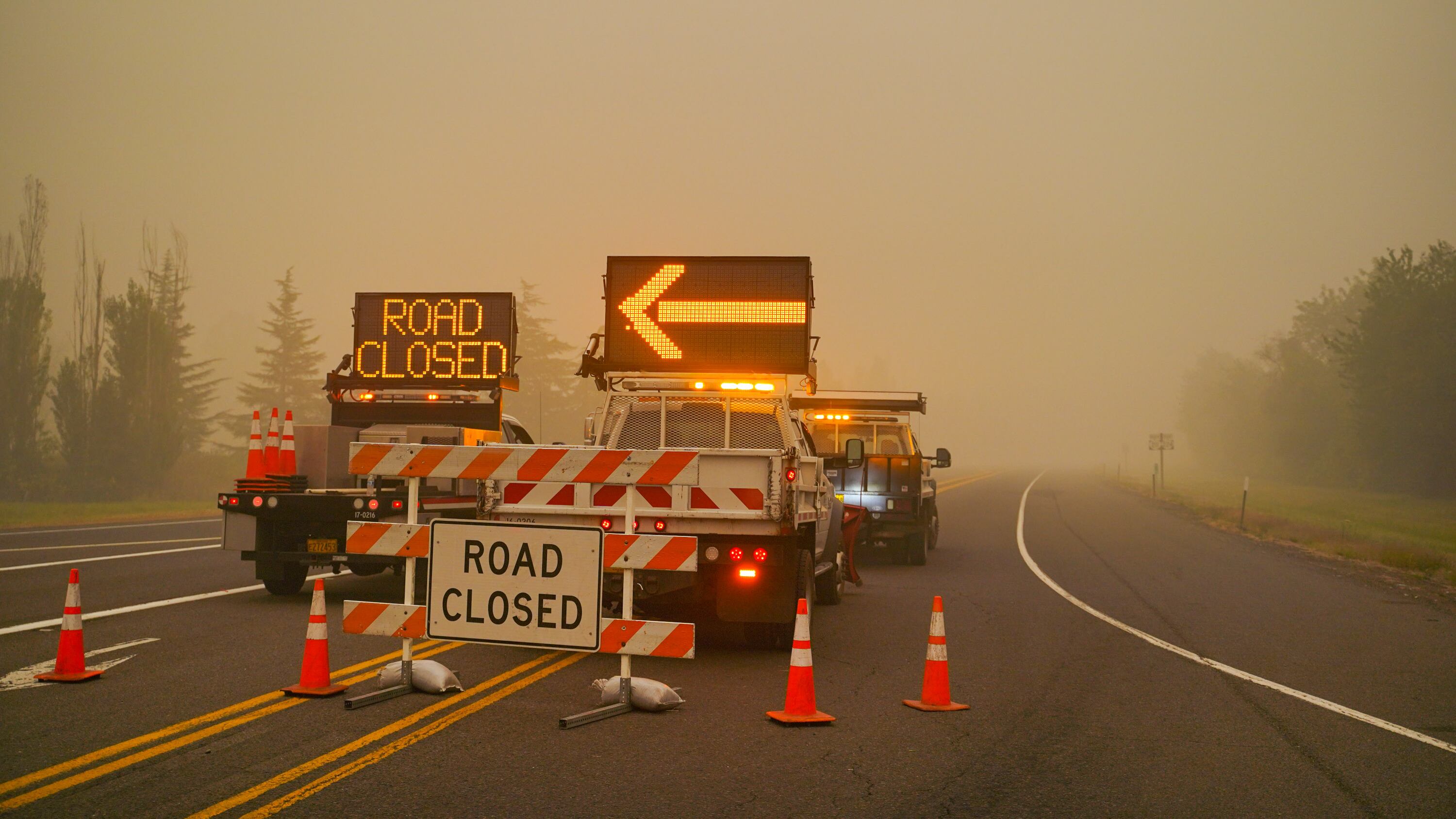 Flames, smoke, downed power lines, trees, and other debris can cause serious damage to the road surfaces, traffic signals, and guardrails, leading to highway and road closures.