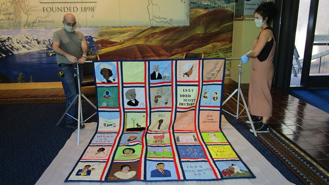 Among the damage to the Oregon Historical Society last night: the theft of the Afro-American Heritage Bicentennial Commemorative Quilt. It was later located blocks away from the building, soaked by rain.