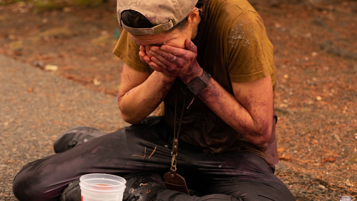 I got hit with a paint balloon in the head. I still do have purple paint on my back that I can’t get off. It was like a triple whammy: It was the ground, it was the mace, the paint balloon. They ruined my favorite hat! [laughs] Everybody knows me because of that hat.