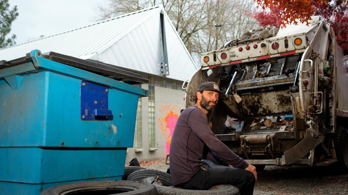 “The first thing I said was, ‘I’m Jaimy Wacker, I do not work for the city, I’m just a garbage man.’ And, in fact, I look extremely like a garbage man,” Wacker says. He does—as he leans off the open door of his garbage truck, he sports boots, jeans, and a trucker hat.