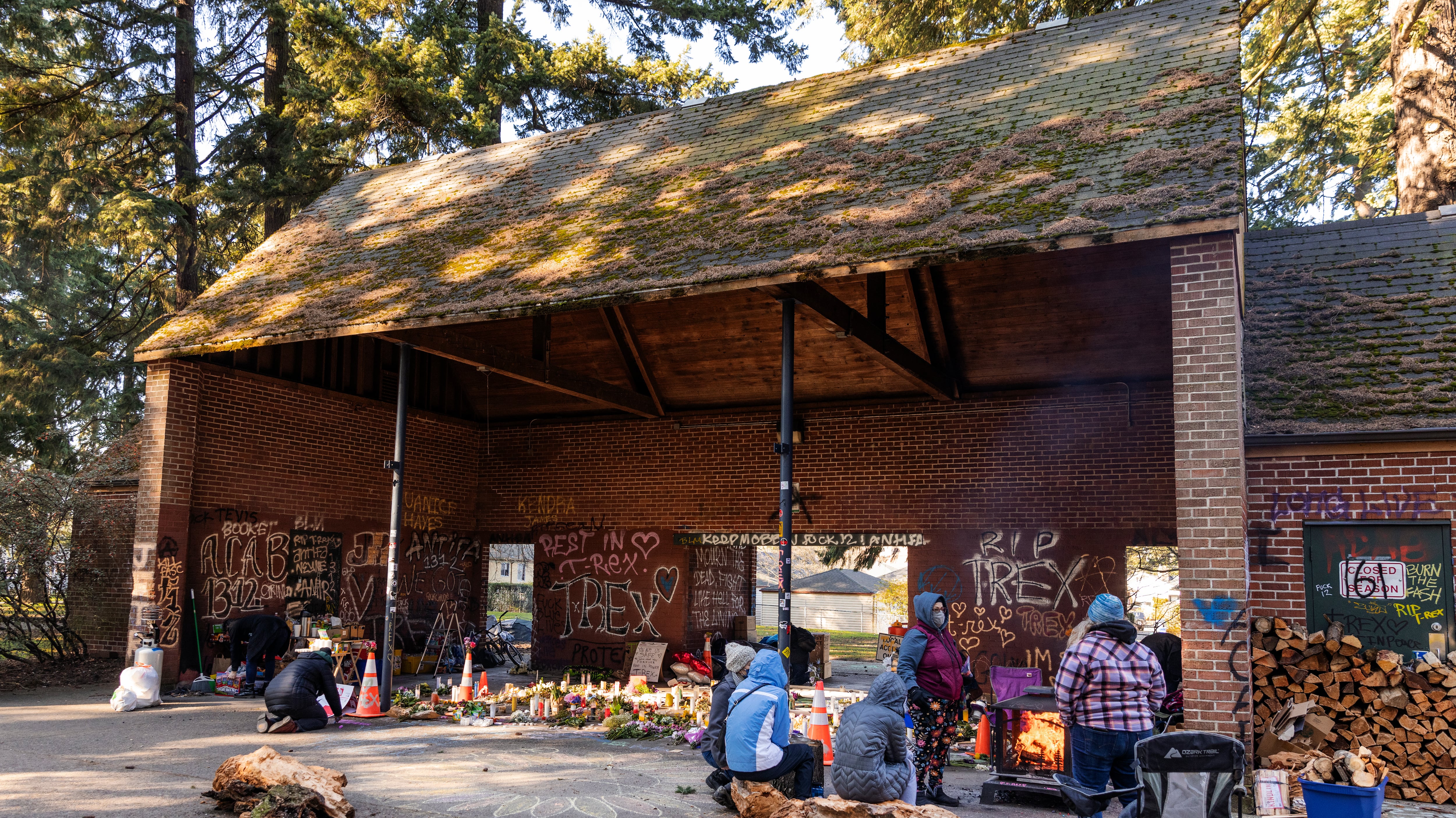 On Feb. 19, a man left his apartment in the Rose City Park neighborhood in Northeast Portland and shot five people directing traffic away from a protest march, paralyzing one and killing 60-year-old June Knightly. In the following days, mourners turned a picnic shelter in Normandale Park into a memorial shrine packed with candles and graffiti messages.