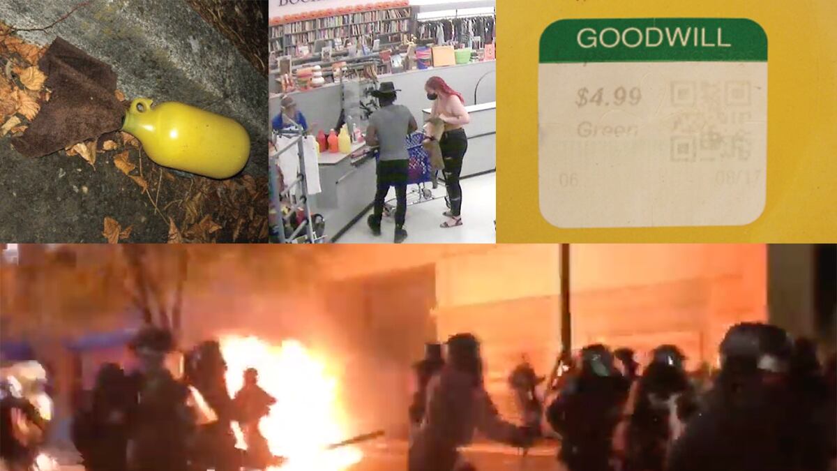 On the bottom of the Molotov cocktail bottle: a price tag from the Goodwill store in McMinnville. About two weeks earlier, after another protest, police had found a baseball bat with a price sticker from the same Goodwill. The store’s security footage from Sept. 4, 2020, showed a young couple purchasing baseball bats and growlers.