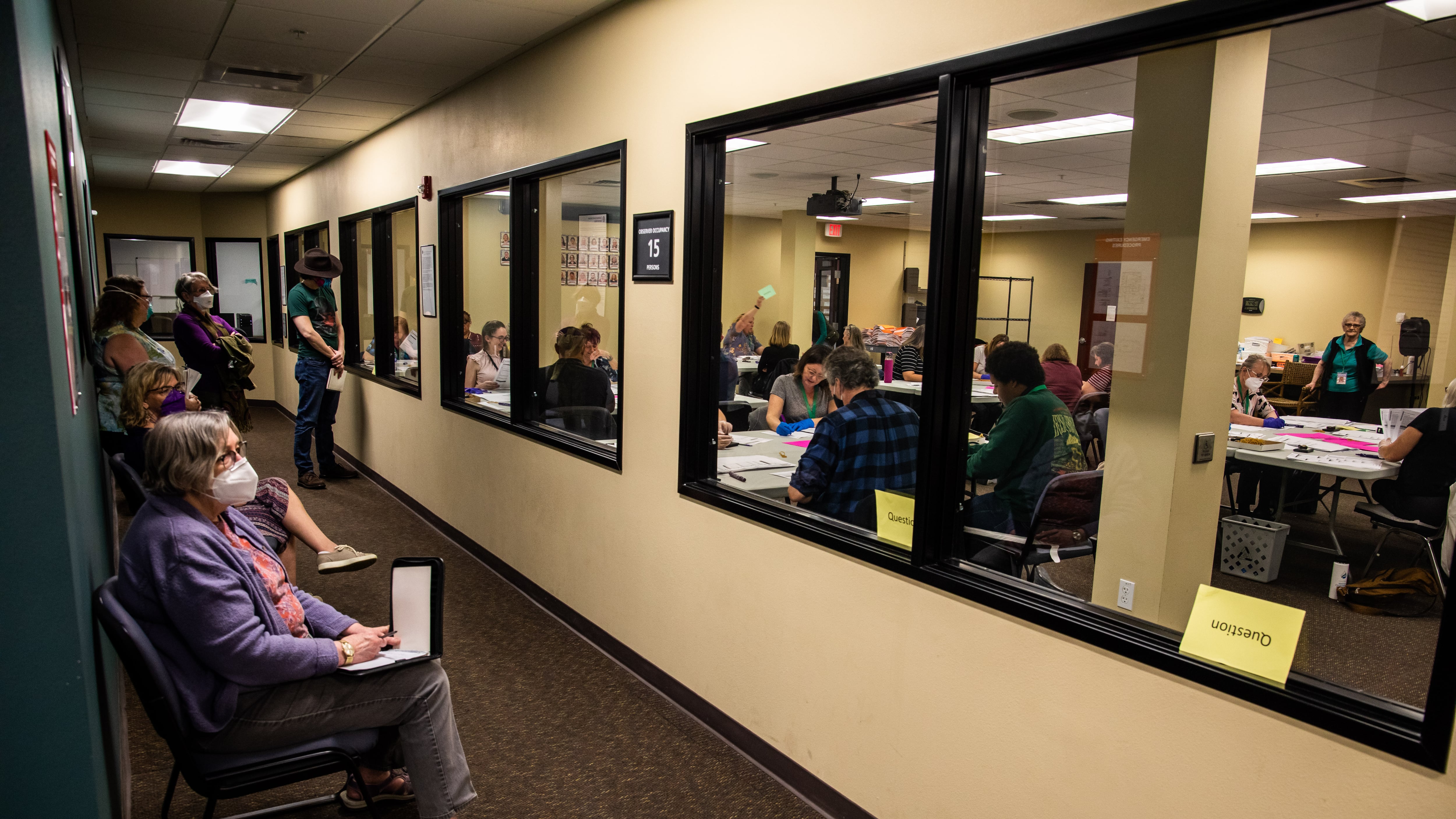 Then, on May 24, the county released video showing Hall walking out of the counting room and into the observation area with an elections worker identified by the county as Tiffany Clark at 7:36 am. Seconds later, Clark is seen on another camera letting a visitor into the building.