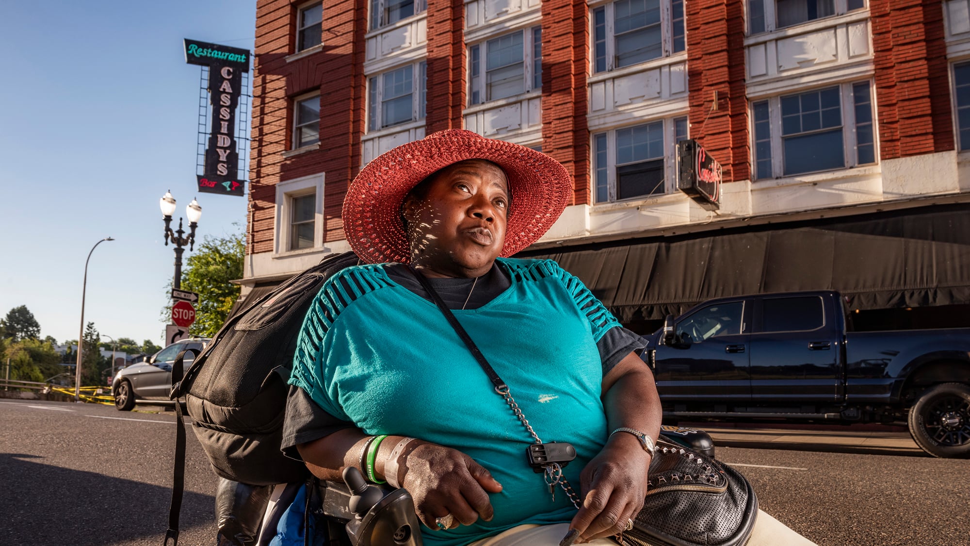 Allen, who’s Black and wheelchair-bound, went first to an adult foster home in Salem. She left after two nights, came back to Portland, and moved to the patch of dirt across the street from the Taft Home. Her partner, David, lived there, too, along with three or four others. You could see her most mornings if you drove west on Burnside and glanced left as you passed Everyday Music.