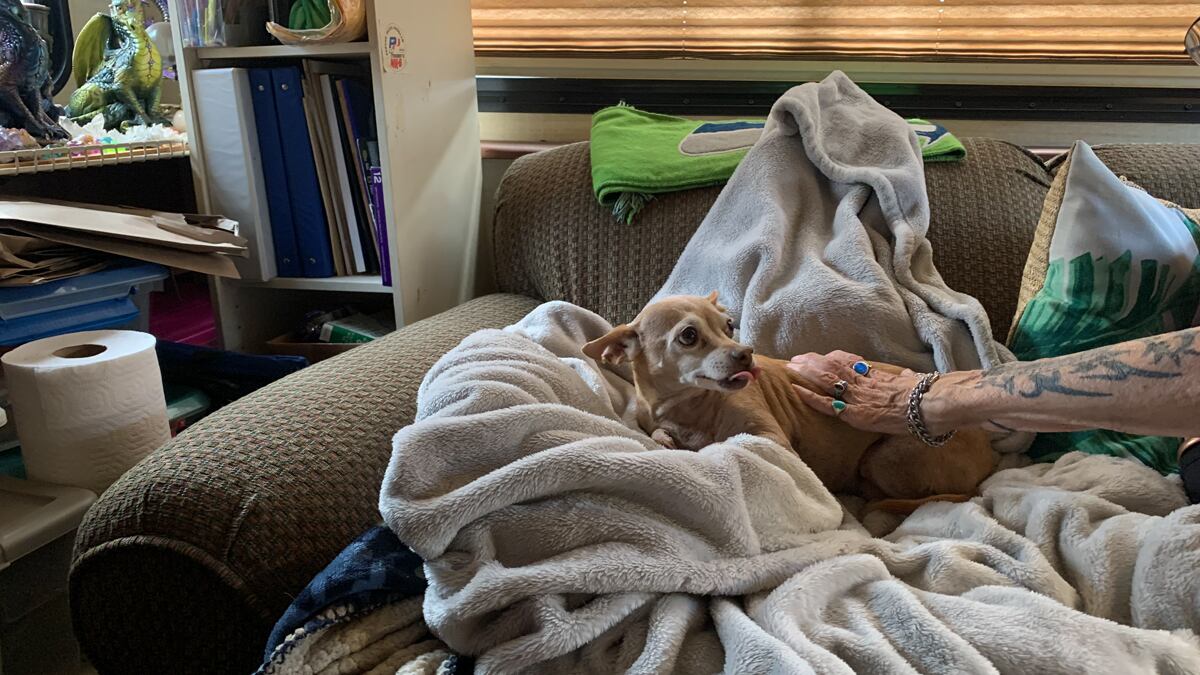 Today, Botkins walks Cilantro. The dog rapidly lifts her feet up and down on the packed dirt as she pants next to the empty strip of land where Anderson’s RV used to sit.