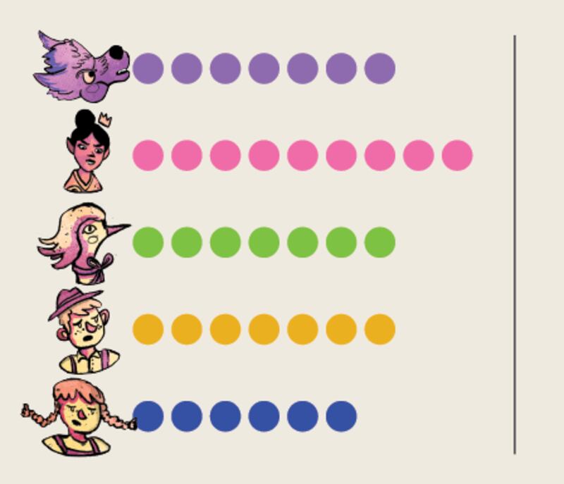 Even after all the interviews, though, we still didn’t really understand ranked-choice voting. So we held a series of mock elections in our office, using beloved fairy-tale characters like Mother Goose and the Big Bad Wolf as the candidates. (We hope they’re beloved. Send complaints about the choice of fairy-tale characters to my editor: amesh@wweek.com.) It involved cutting up scraps up of five colors of paper and stacking them three high to simulate three choices for one district. Each pile became a vote. Then, we followed the rules to see how the ballot of an average voter, we’ll call him Thomas Lauderdale, would fare if he picked the Tooth Fairy, Gretel and Mother Goose, in that order.