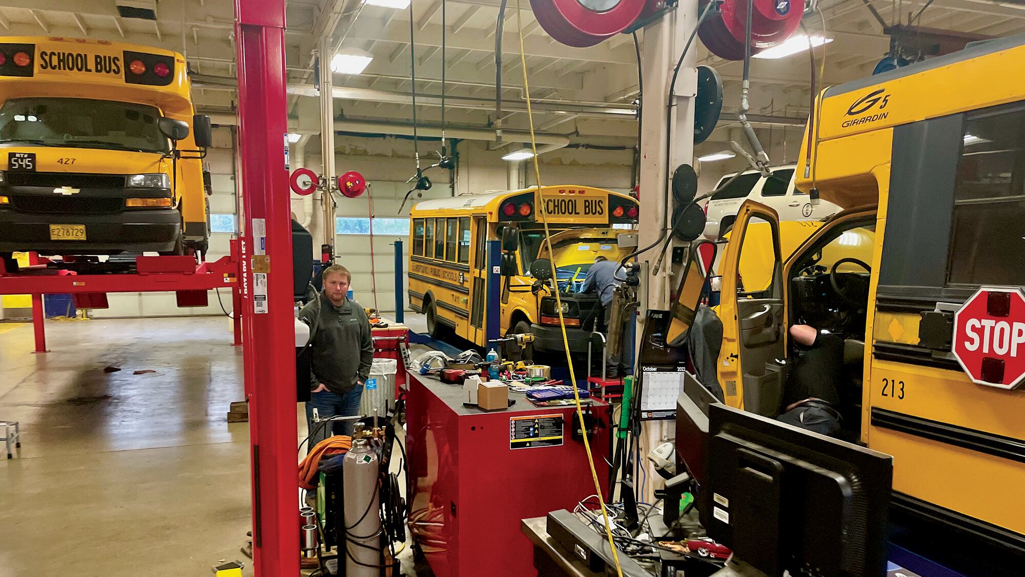 Burglars strike almost daily, armed with saws, drills and rubber hoses, says Brandon Coonrod, the district’s assistant director of student transportation. They siphon gas, steal batteries, and hack off catalytic converters. The chain-link fences ringing the lots have proved little deterrence.