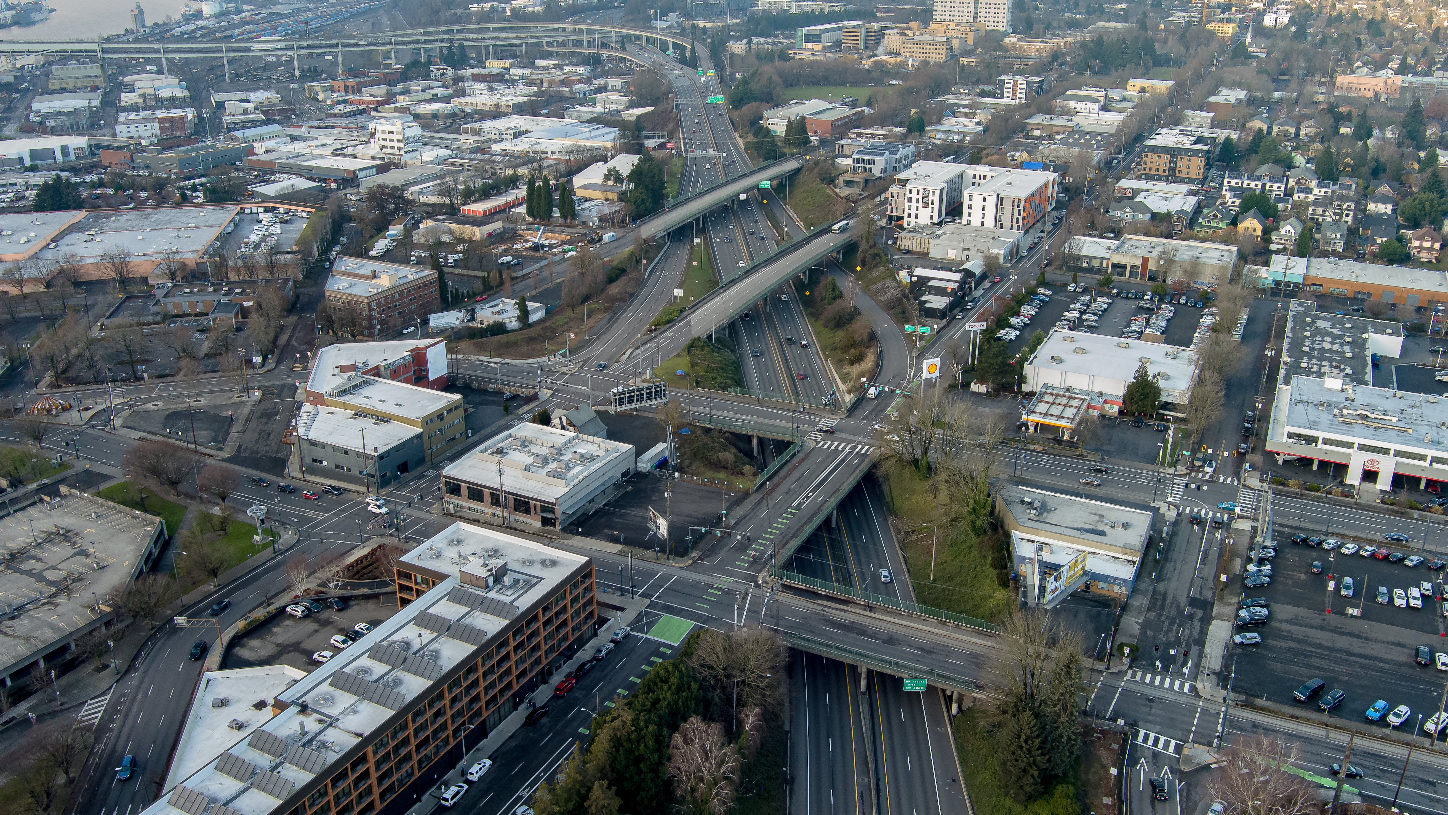 I-5 was indeed cut as if with a meat ax through Portland. It separates the eastside from the Willamette River. After the expansion of 99W, it’s the original sin in the Rose Quarter, and many followed. There’s Moda Center, an aging hulk surrounded by parking garages. Across the windswept, empty plaza stands Veterans Memorial Coliseum, another outdated venue that also happens to be on the National Register of Historic Places. And a half-dozen blocks to the east is the bankrupt Lloyd Center.