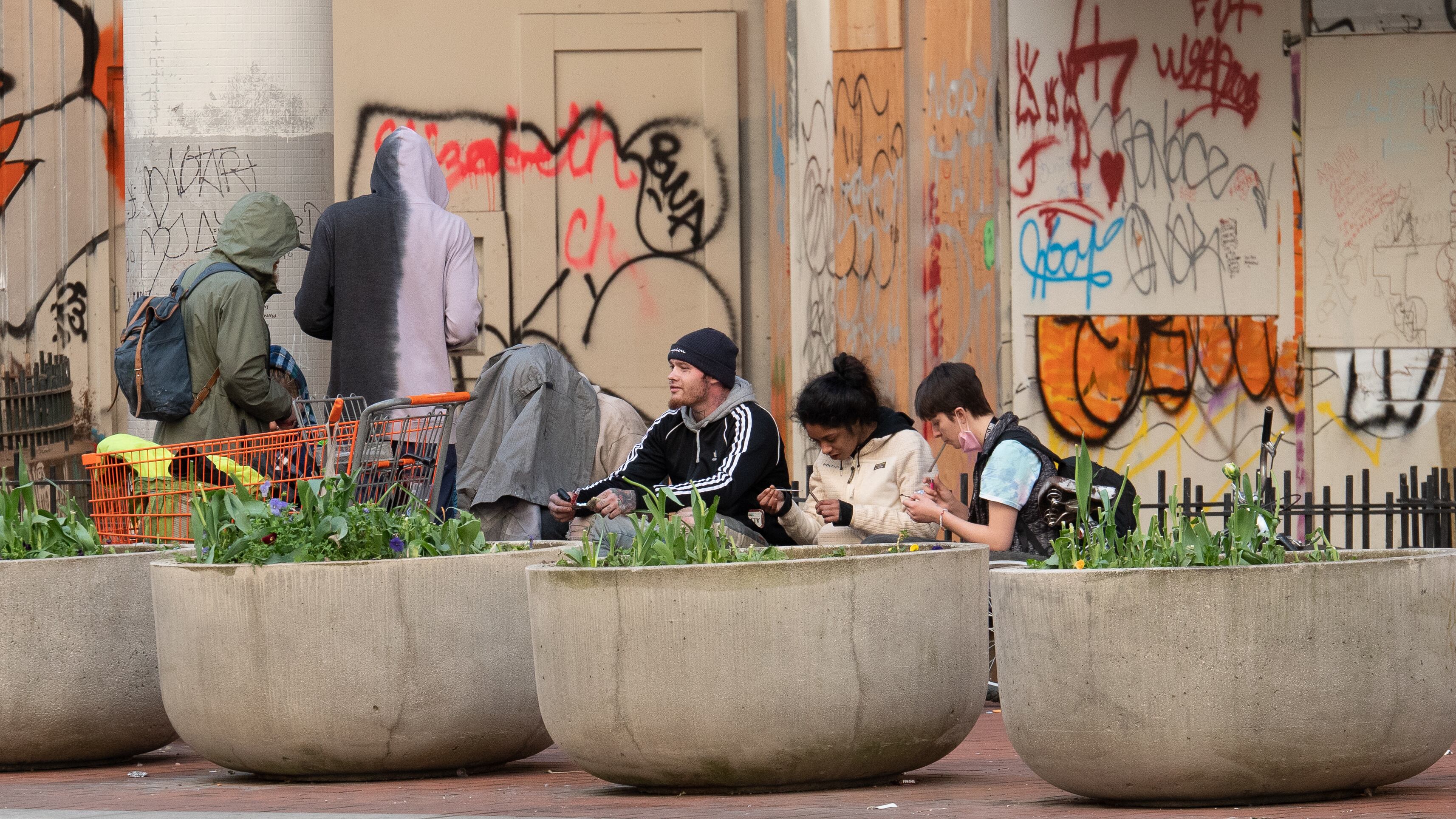 “No one wants treatment,” said a member of a group clutching tooters and passing around tinfoil under an eave along Southwest Harvey Milk Street near 5th Avenue (an area “rife with drug use and sales,” PPB says). “Out here it’s easier to get drugs than it is to get food.”
