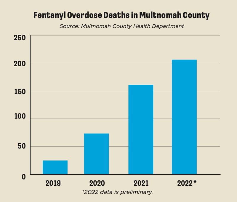 Overdoses have surged in Portland over the past few years. Last year, the Multnomah County Medical Examiner’s Office recorded more than 350 overdose deaths involving opioids, nearly triple the number only three years earlier, an increase driven by fentanyl. Oregon has the highest rate of drug use disorder in the country, and the fastest-growing fatal overdose rate among teenagers.