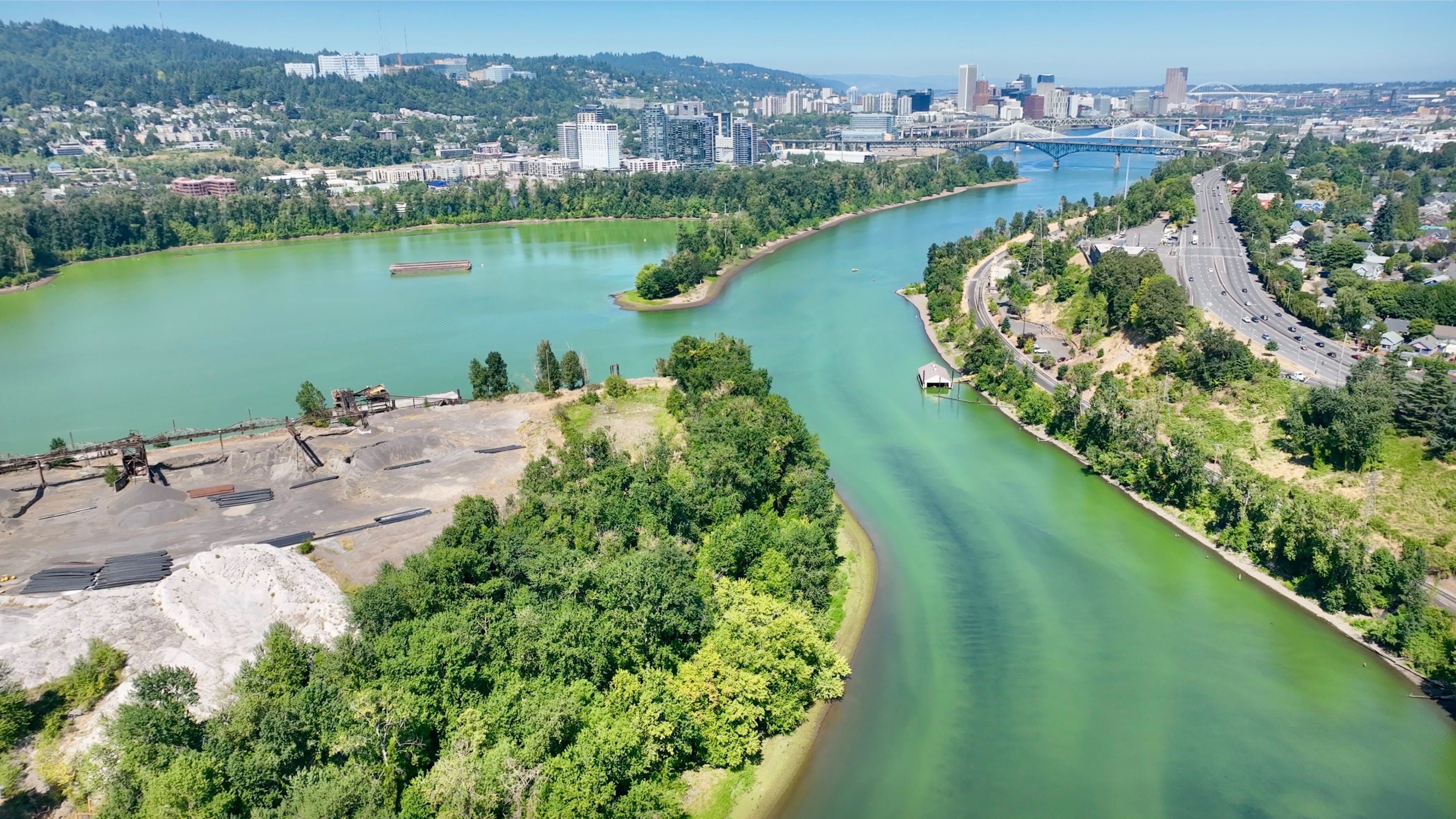 The lagoon, located at mile 15.4 of the river, was carved over decades by Ross Island Sand & Gravel, a subsidiary of the business empire overseen by textile and newspaper magnate Robert Pamplin Jr. (“Trader Bob,” WW, Feb. 23, 2022). Because the longtime gravel pit has just one outlet to the river, water that enters the lagoon stagnates—and when the temperature rises, it’s an incubator for algae. “The Ross Island Lagoon is a pond inside of a river,” Levenson says. “It’s a harmful algae bloom factory.”