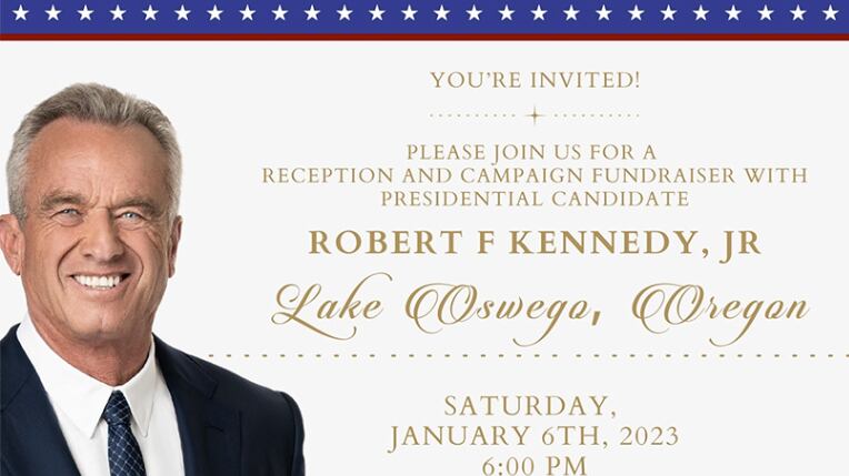 Robert F. Kennedy Jr., the independent candidate for U.S. president who has cast doubt on the safety and efficacy of vaccines, is holding a fundraiser in Lake Oswego on Jan. 6.