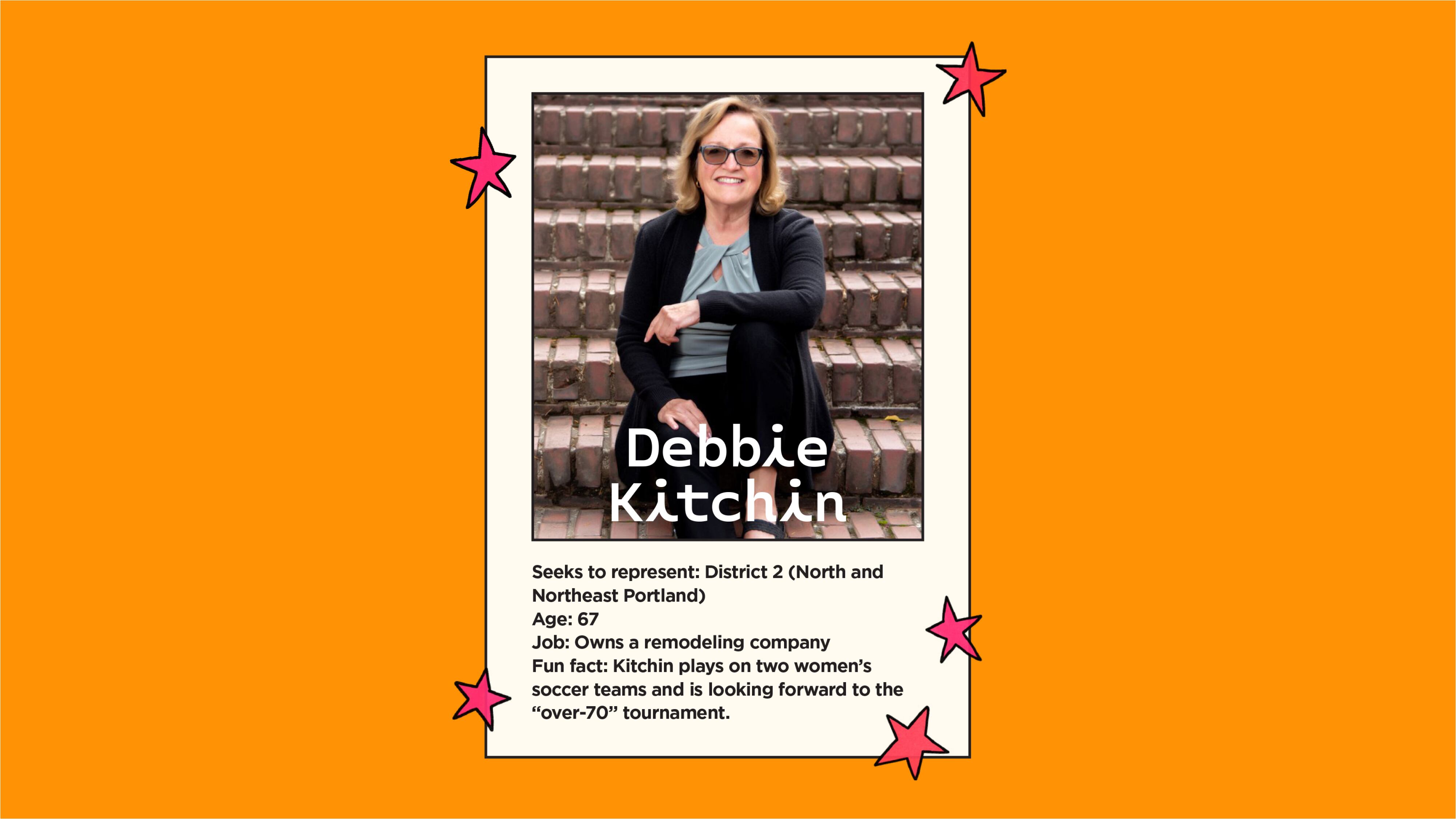 This is Kitchin’s first bid for public office. A graduate of Reed College who received an MBA at Portland State University, she spent 15 years as a regional economist, first at the Bonneville Power Administration, then at the Northwest Power and Conservation Council. In 1994, she and her husband founded Interworks LLC, a general contractor renovating homes and commercial properties.