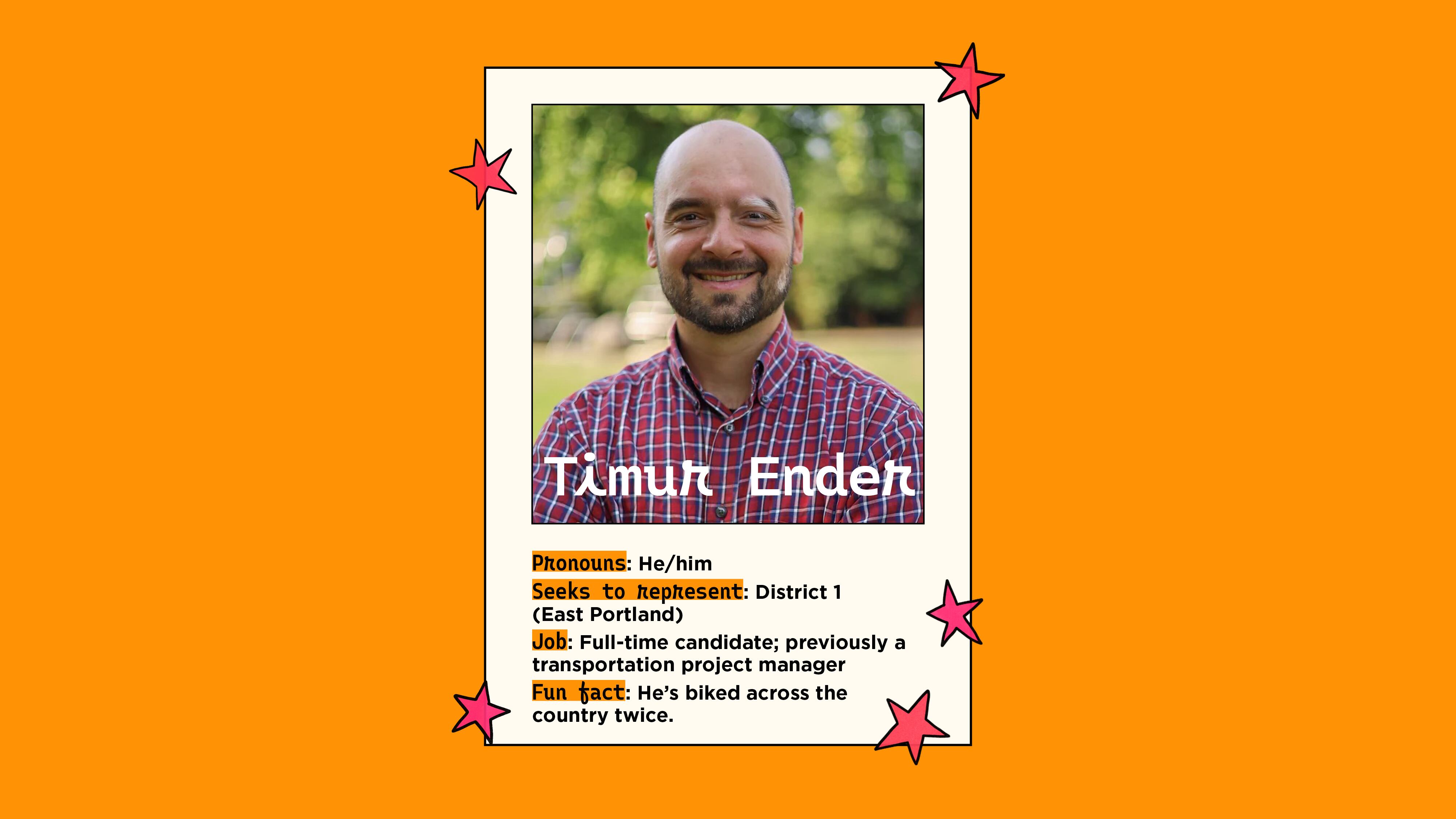 When Timur Ender heard about the revamping of Portland’s city government, he was excited. But he was also worried that there wouldn’t be strong District 1 candidates who shared his perspectives.