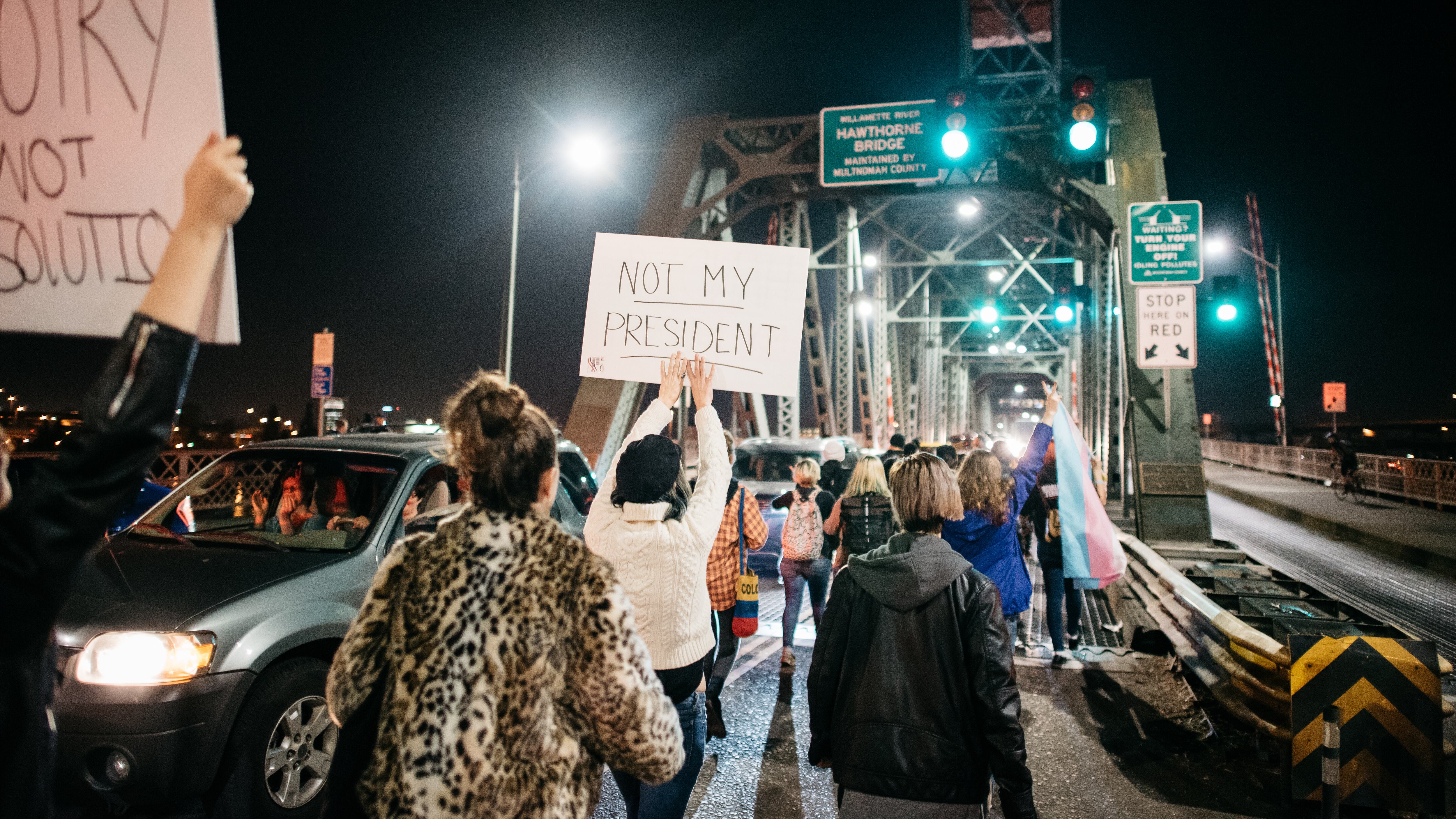In recent election years, Portland has become something of a byword for street protests that have at times descended into riots. Nightly marchers blocked highways and shattered windows in the nights following former President Donald Trump’s election in 2016. Soon after, costumed nationalists began arriving regularly in Portland to brawl with masked anarchists. Four years later, in 2020, thousands of people turned out to protest George Floyd’s murder for more than 100 consecutive nights during pandemic shutdowns. Trump sent in federal agents, and Portland police officers deployed tear gas, flash bangs and rubber bullets in often brutal clashes with demonstrators. Masked vandals continued to deface downtown property well into 2021.