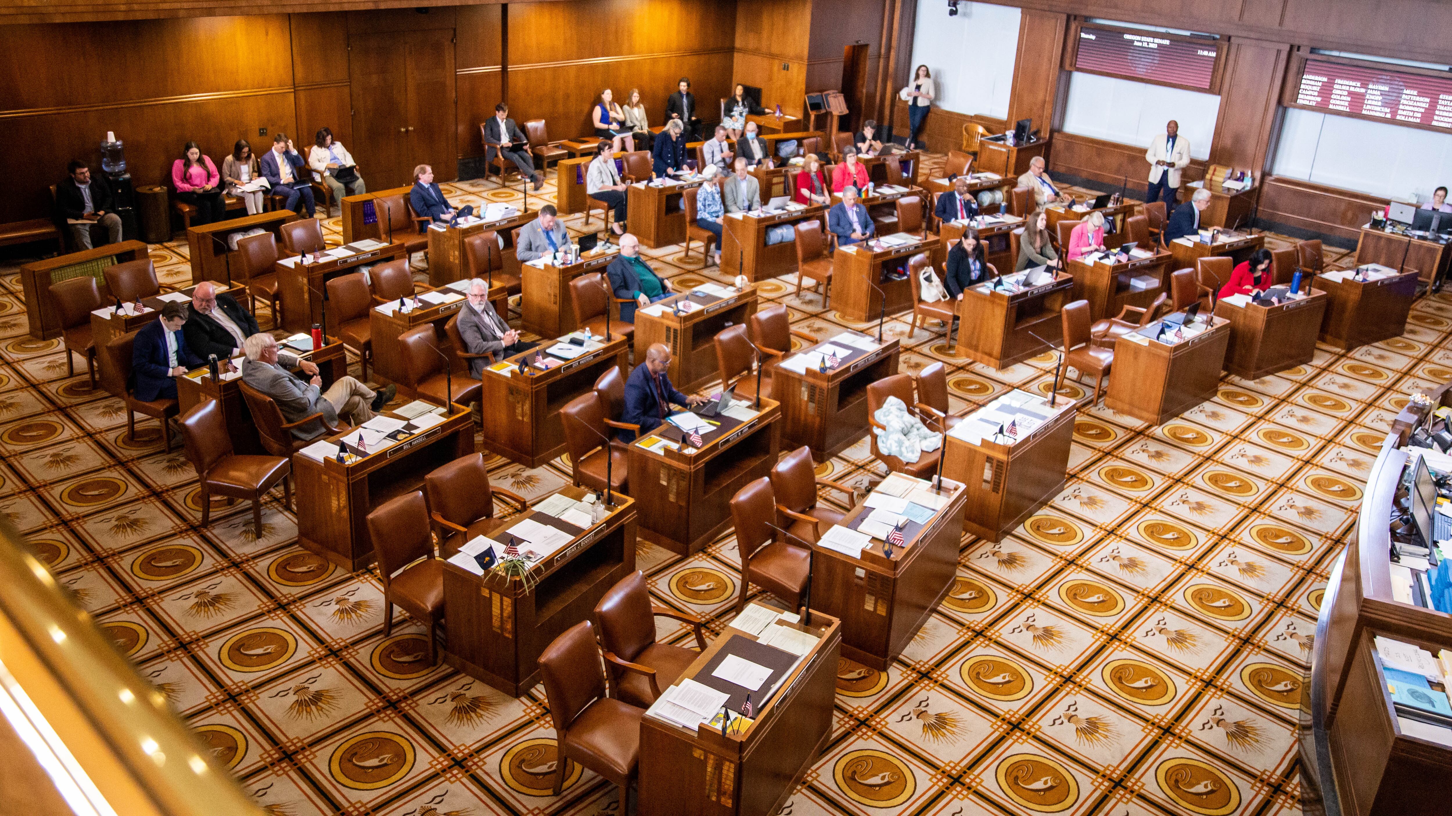 The Oregon Constitution requires a three-fifths supermajority to raise taxes or pass new ones. Currently, Democrats have a supermajority in each chamber (18-12 in the Senate and 36-24 in the House).
