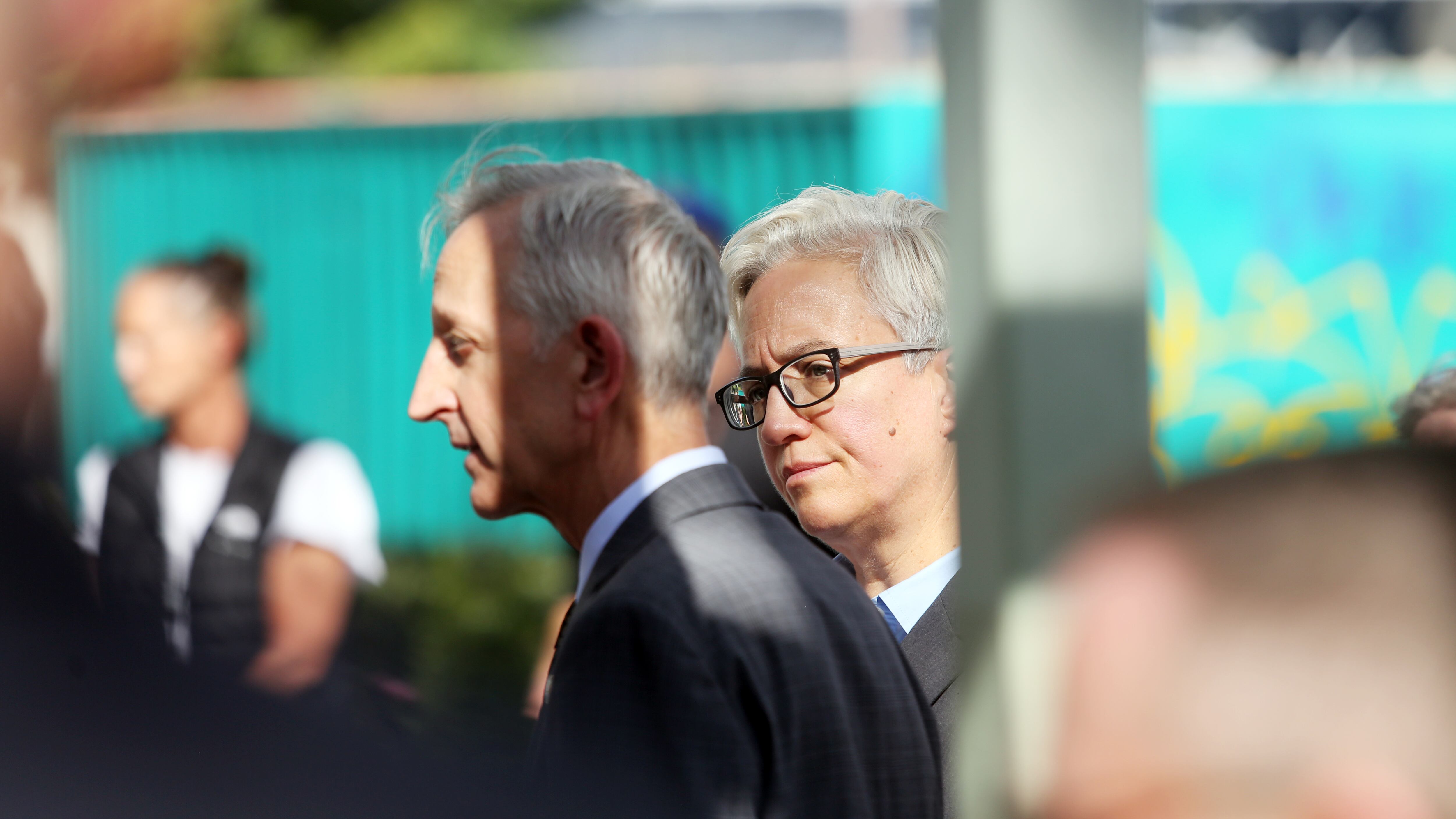 She was not the only Oregonian making such a case to outsiders. Feet away from the press scrum, Michael Wenger and his husband, Jeff Faustman, were strolling with their dog, Gromit. They were documenting the downtown scene, they explained, to send off to family members in Kansas and beyond who insisted that the couple was brainwashed, that Portland was a true hellscape.