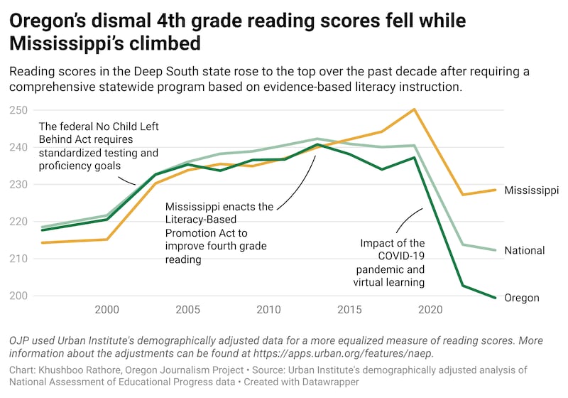 There are many reasons Oregon schools are failing, and the Oregon Journalism Project will examine them in the coming months. But first, it’s useful to take a good look at Mississippi’s reading turnaround—built on what’s now called “the science of reading,” strong leadership, and a consistent approach across all districts—to see if it holds lessons for Oregon.