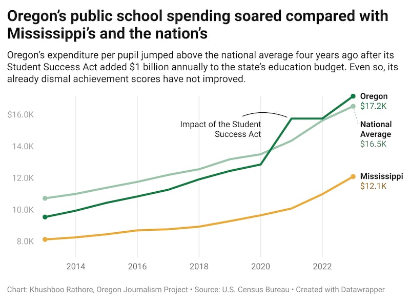Mississippi is a state burdened by deep poverty, tightfisted public spending, and a punishing legacy of segregation. It spends $13,461 per student a year, $6,000 less than Oregon. And yet, test scores show, students across the board in Mississippi are learning to read in ways that Oregon could only hope for.