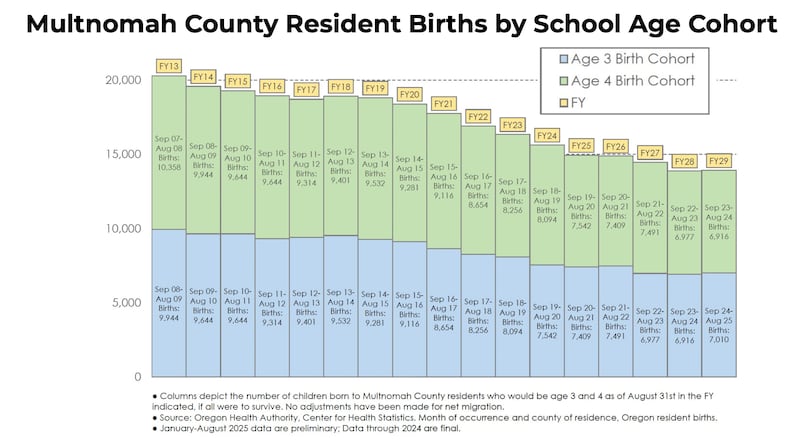 The reported gusher in seats comes the same week a demographer presented data to the county’s Preschool for All Technical Advisory Group, first reported by The Oregonian, showing that, at full capacity, the program likely will have far fewer students because of declining birth rates and a net exodus of families with preschool age children.