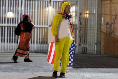 Seth Todd, 24, bought the now-famous green inflatable on Amazon in June for about $30. They still just have that one frog costume—the one you and everyone saw them wearing Oct. 2 when a U.S. Department of Homeland Security agent sprayed chemicals directly into the air vent—and it is still laden with chemical irritants. They had difficulty breathing for about a week after that night, despite Todd’s famously defiant response at the time, “I’ve had spicier tamales.”