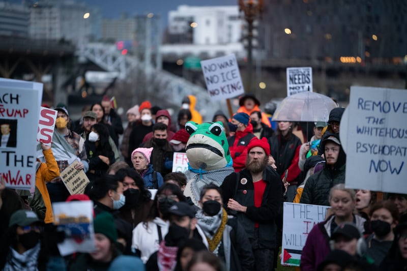 A new year brought Portlanders a new reason to mass in the streets against President Donald Trump. Hours after the White House announced it had captured Venezuelan President Nicolás Maduro, several hundred protesters marched through downtown Portland to decry the military raid.