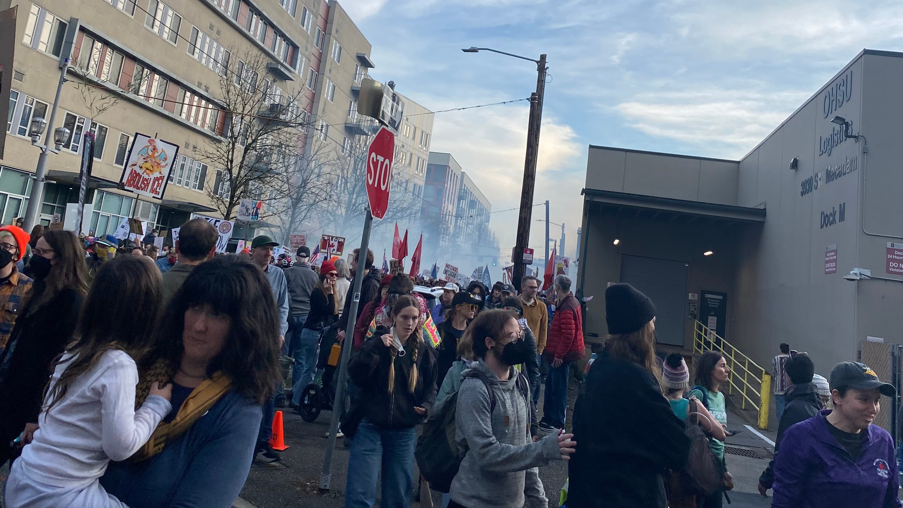 The scene that ensued—hundreds of people retching in clouds of tear gas—recalled the “No Kings” march last June, when the use of force by ICE agents spurred nightly protests outside the South Waterfront building. But on Saturday, the recipients of the munitions included dozens of children, according to reports from the scene.