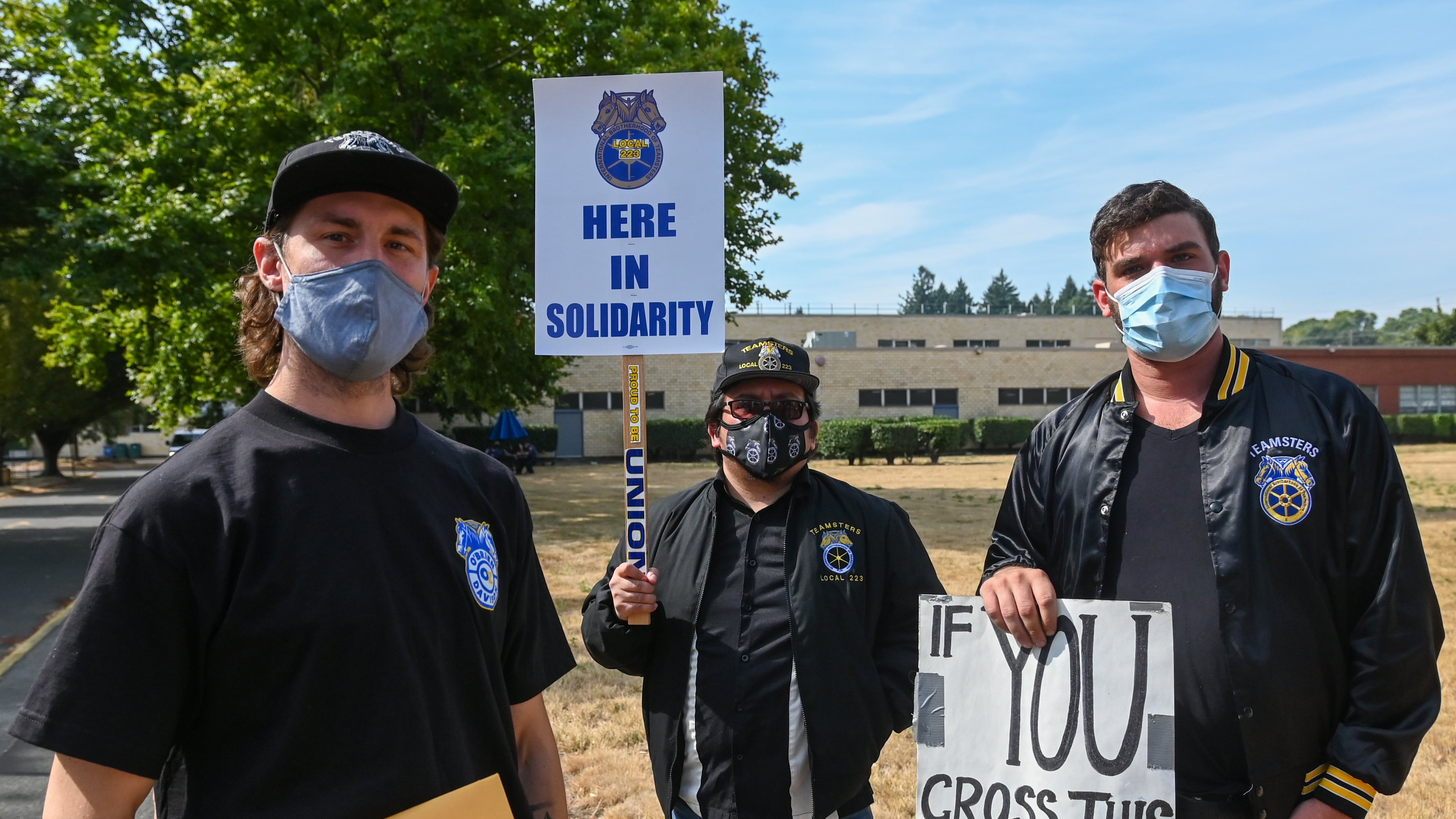 Jesse Dreyer, a member of the International Brotherhood of Teamsters Local 162 union, says a Huffmaster agent beat him while he was picketing with members of the local bakers’ union outside the Portland Nabisco bakery on Monday morning.
