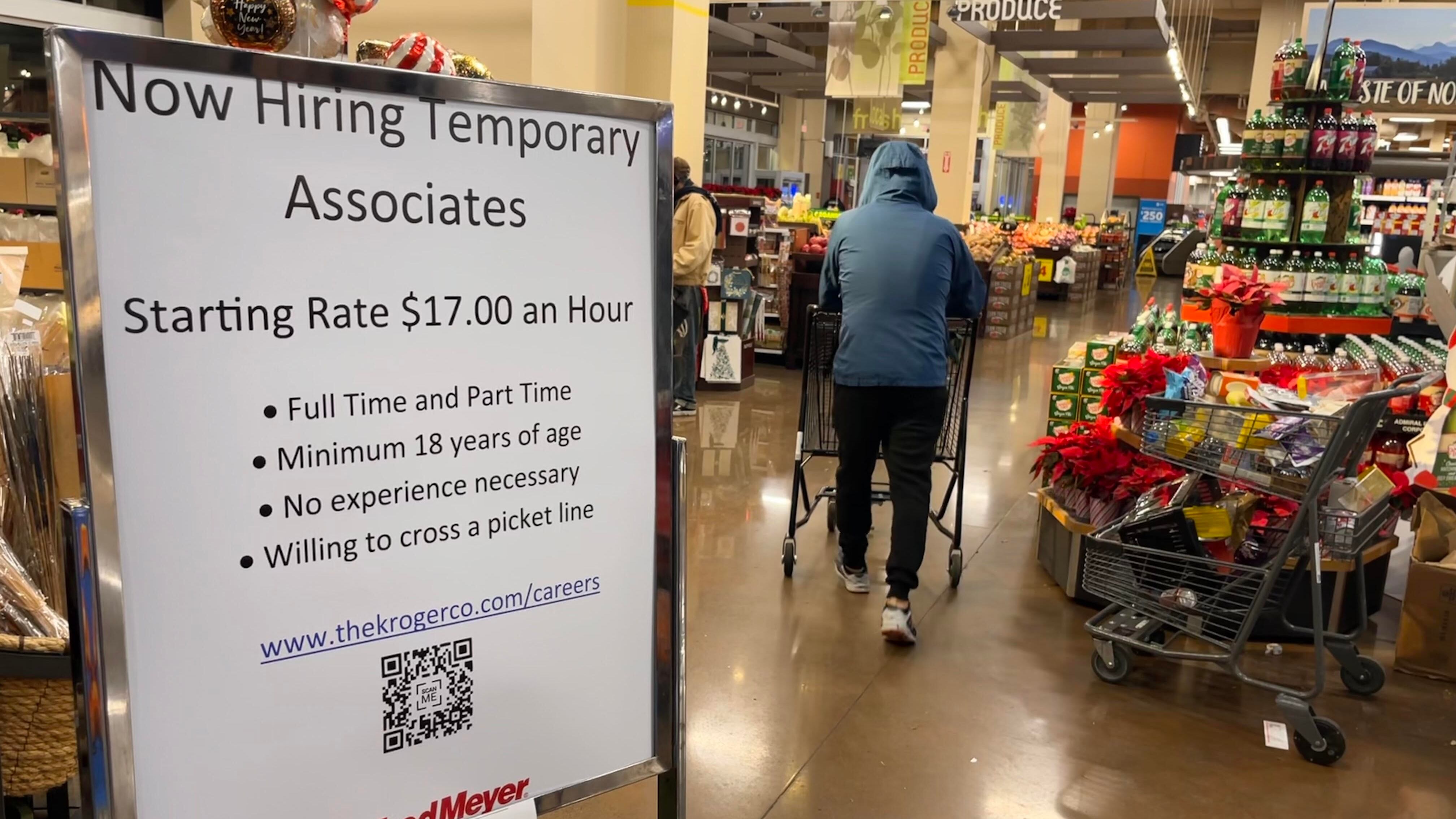 Indeed, Fred Meyer has put signs outside of some of its stores advertising temporary work positions with no experience necessary. At the bottom it reads, “Willing to cross a picket line.” And an additional piece of paper Fred Meyer added later to the bottom of its signs made it clear the positions were temporary because of an impending strike: “In accordance with [Oregon laws], you are hereby notified that any offer of employment may be temporary based on the duration of the strike.”