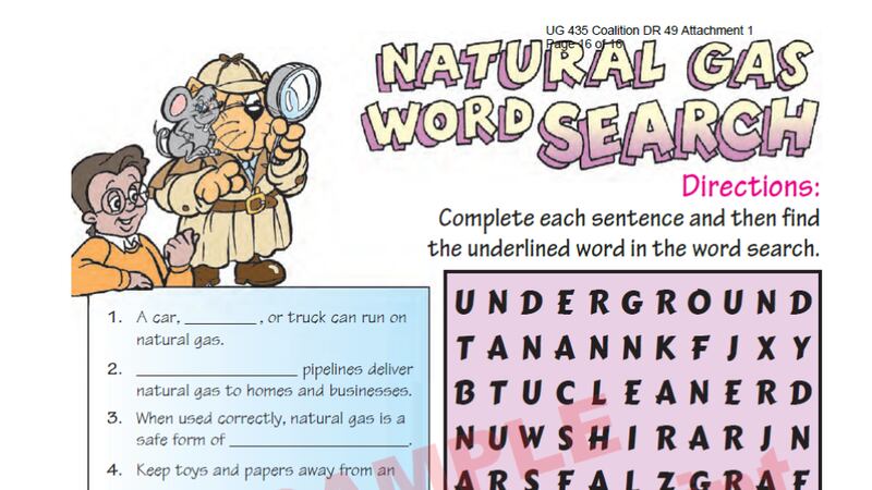 One frame of a NW Natural publication called “Your Natural Gas Activity Book” shows a factory worker handing a child a baseball bat, saying: “Natural gas can be used by industry to manufacture products like video games and baseball bats.” The page was included in testimony to the Public Utility Commission of Oregon in April.