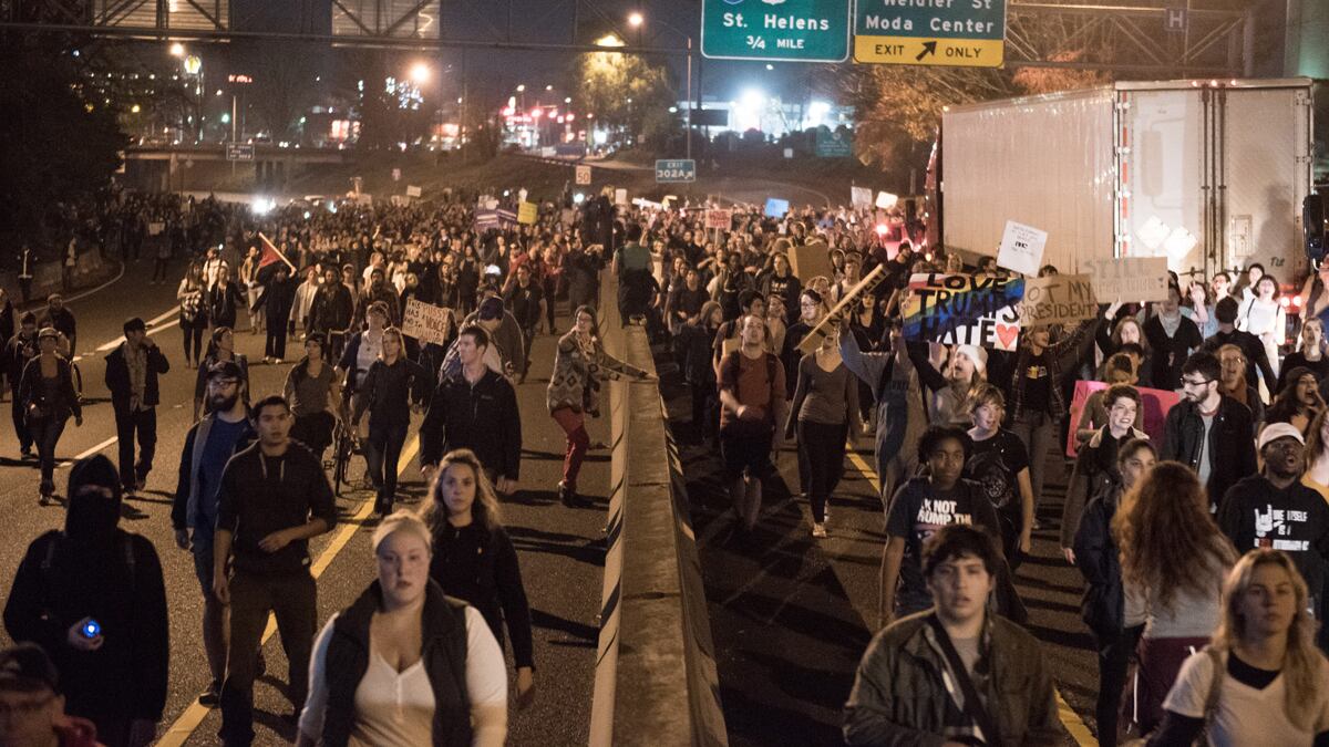 In November, Portland saw several nights of protests, some of which turned violent when vandals smashed cars and windows of businesses. Many of those marches blocked freeways.