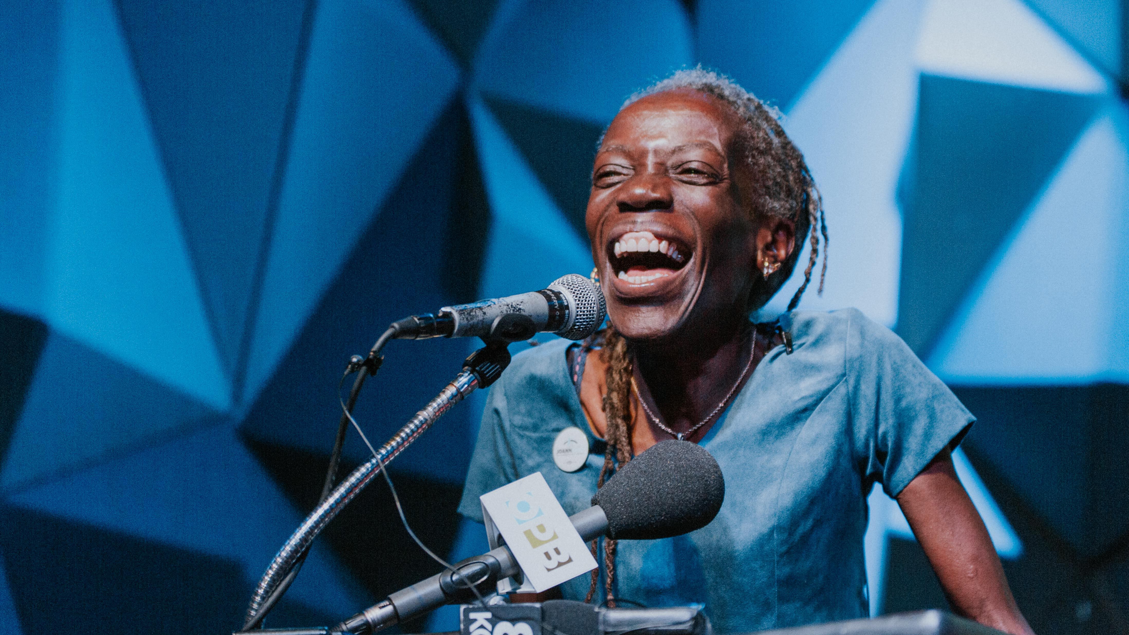 During her speech, Hardesty was interrupted by a little boy who said he wanted to show her his dance moves. She replied, with a laugh: "I have some dance moves. They get me in trouble sometimes."
