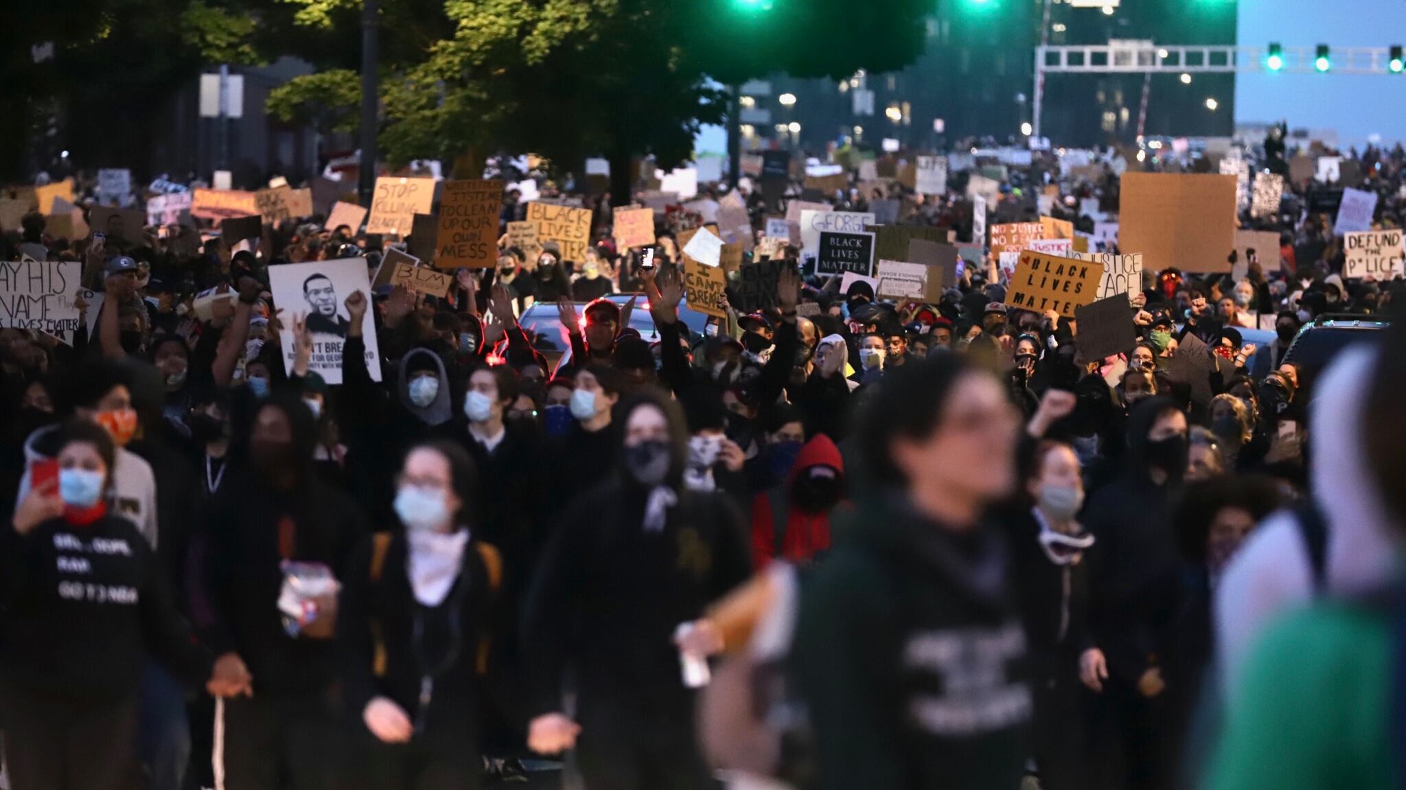 Thousands of people marched across the Burnside Bridge into a vivid pink sunset and a line of police waiting for them. Long after a citywide curfew, that crowd stood for hours in a standoff with police in which neither side would blink. For a time, it looked as though the city would avoid the chaos that marked the first two nights of protesting the killing of George Floyd.