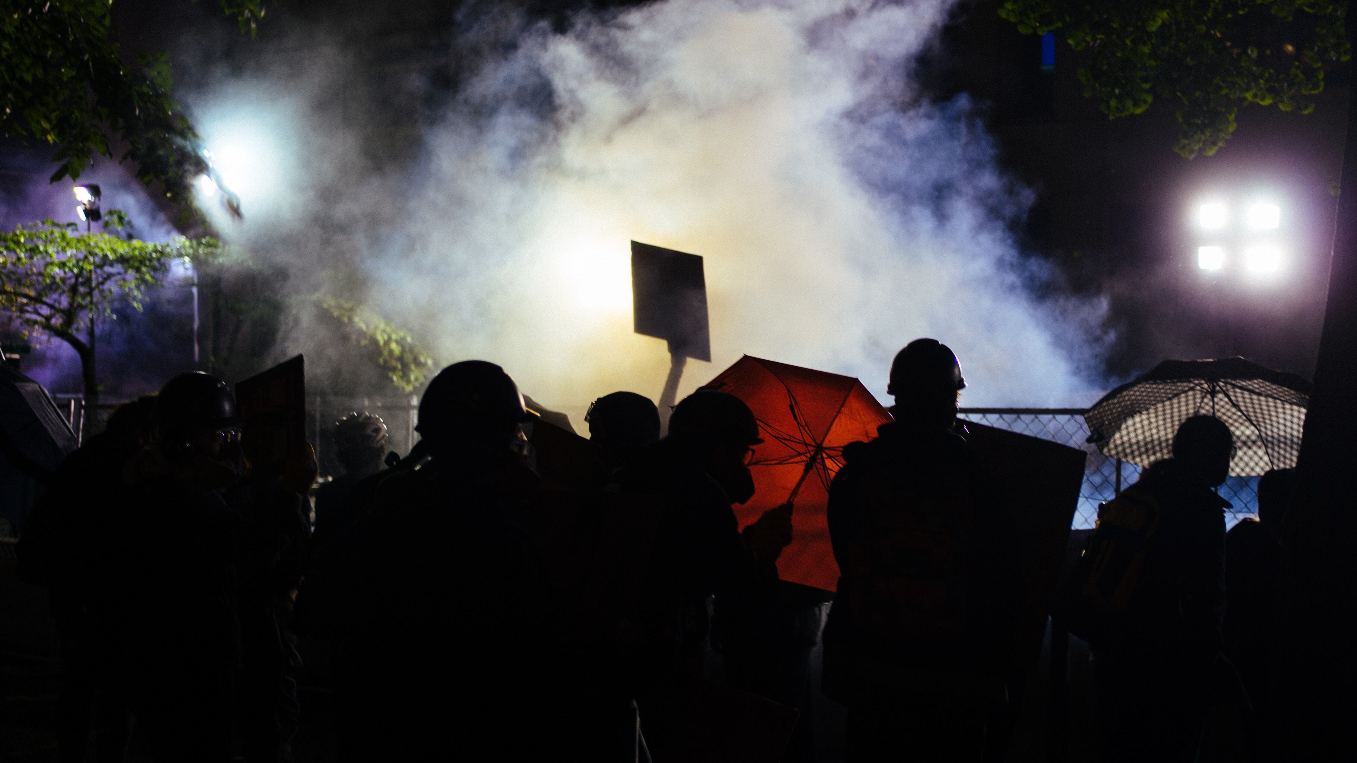 Last night, police took an aggressive approach to clearing protesters from a fence surrounding the Multnomah County Justice Center. After protesters hurled objects over the fence at police, officers used smoke and explosives to clear demonstrators from downtown, violently dispersing the crowd while making at least 50 arrests.