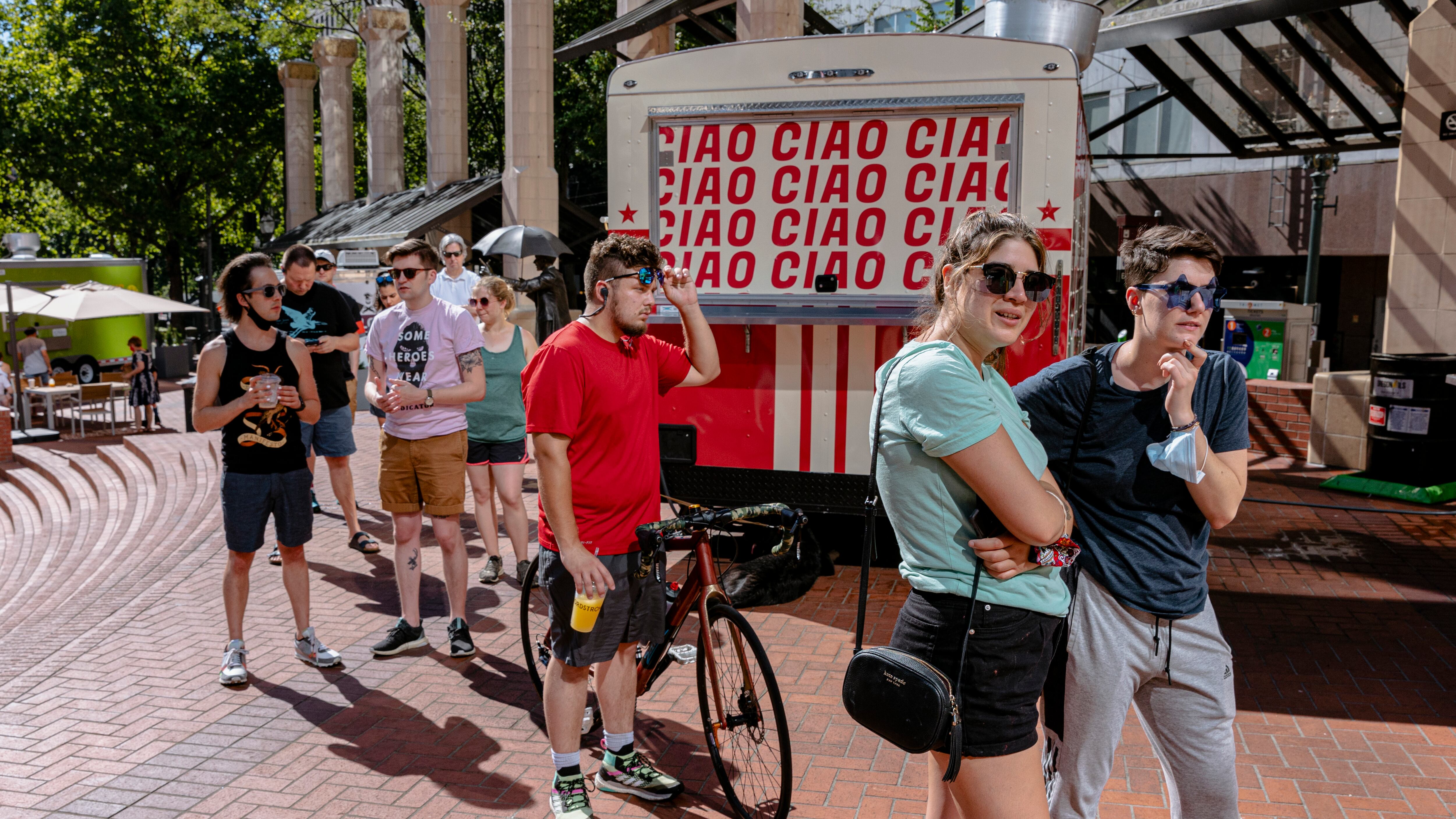 The opening of the pod comes at a time when city officials are eager to entice citizens back downtown as some of Portland’s offices, commercial spaces and stores reopen to full capacity. The opening of the pod is part of Portland’s campaign called “Here for Portland.” A list of reopening events kicks off Saturday and includes a sing-along with Pink Martini, dance and fashion performances, and lots of food. (The events start at 1:30 pm.)