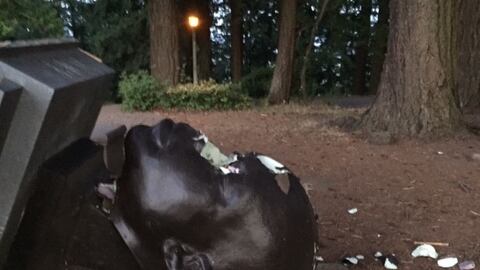 Sometime during the night of July 27 or early morning of July 28, the bust was torn from its pedestal. Photos sent to WW this morning show the face’s nose torn off, and much of its forehead shattered. A historical plaque on the pedestal describing York’s role in the Lewis & Clark expedition was also torn apart, the photos show.