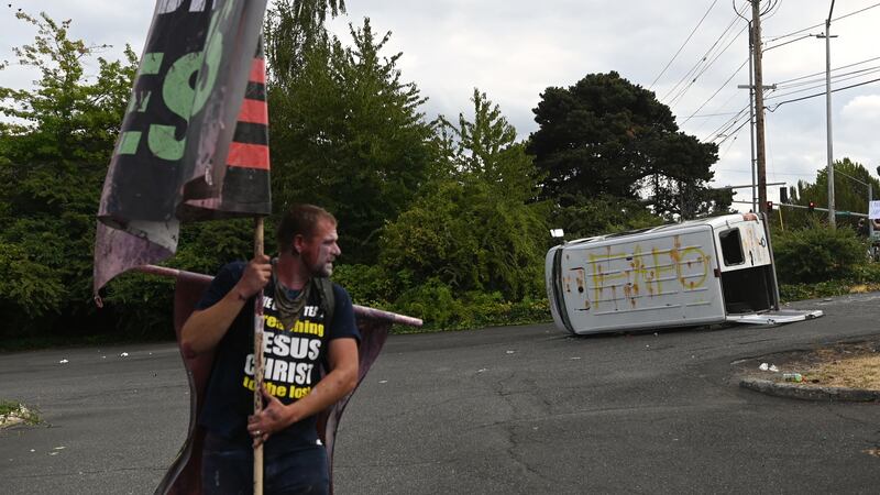 The Police Bureau in its statement also omitted any names or political affiliations of the involved groups. “Some individuals committed acts of violence and property destruction both in downtown Portland and in the Argay Terrace neighborhood after some people physically challenged each other,” the bureau wrote Sunday.