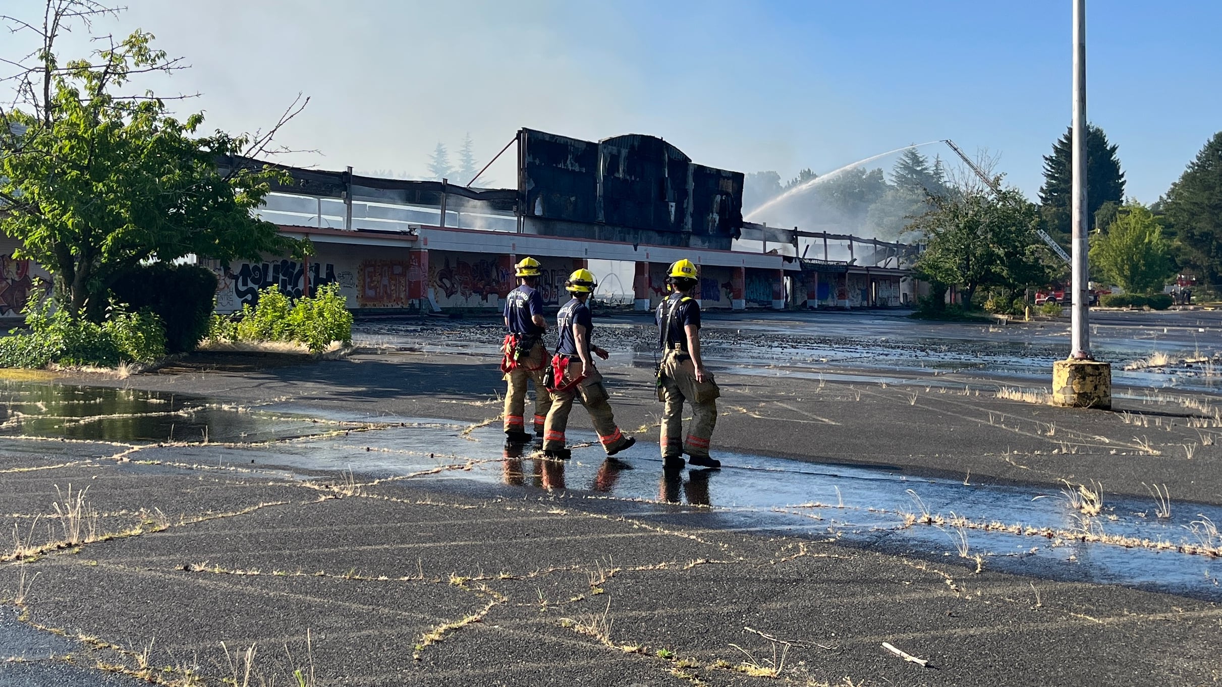 The fire began sometime in the early morning. Portland Fire & Rescue responded at 6:30 am, sending a total of 90 firefighters from Portland and Gresham to the graffiti-covered building at the corner of Northeast 122nd Avenue, said fire spokesman Rick Graves.