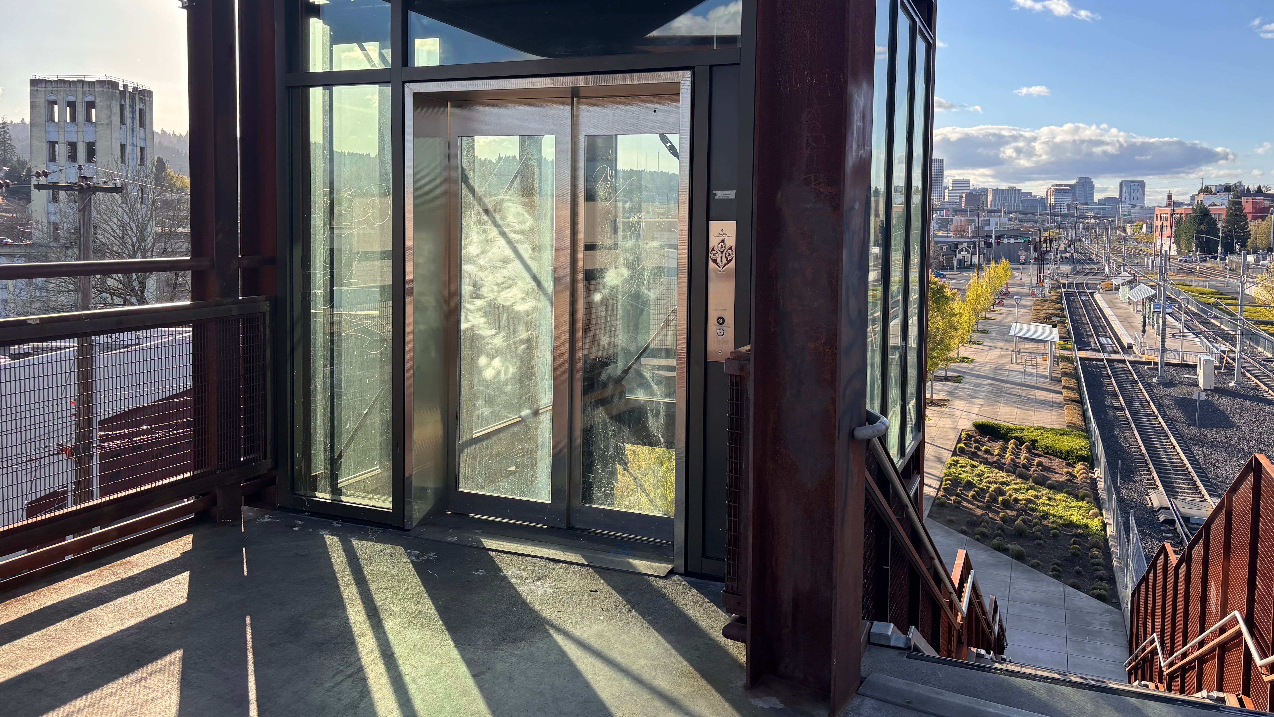 A Portland Bureau of Transportation spokesman says the north and south elevators that people ride to reach Bob Stacey Crossing, which allows pedestrians and bicyclists to traverse both Union Pacific train and MAX light rail tracks are down due to vandalism.