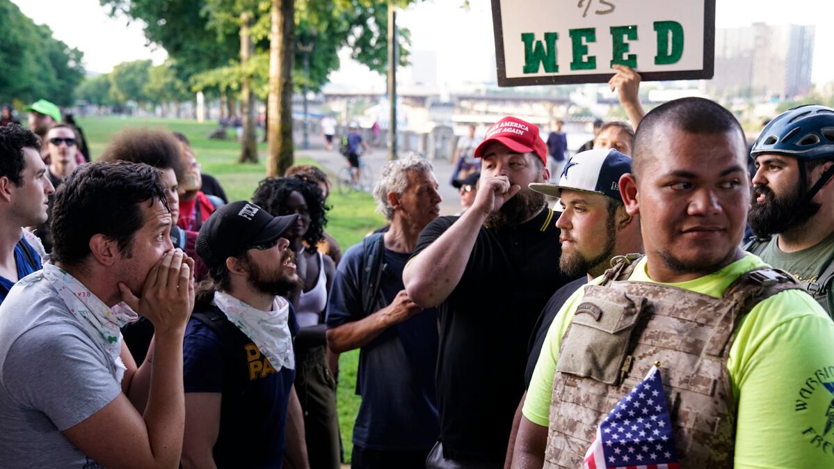 Patriot Prayer, a far-right protest group based out of Vancouver, Wash., was in Portland for what it called a "march for Kate Steinle," the San Francisco woman who was shot and killed by an undocumented immigrant earlier this year. A jury acquitted the man of murder and involuntary manslaughter charges last month—but the killing has become a rallying point for nationalists who want to close the border with Mexico.