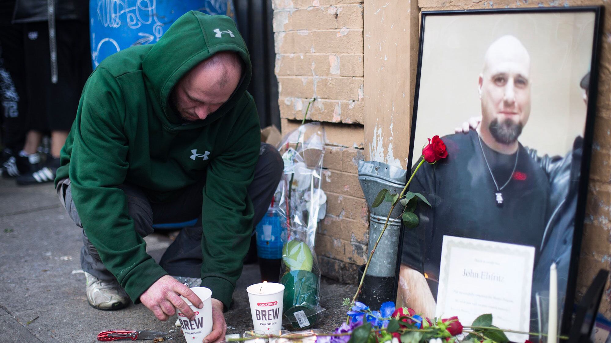 Police shot and killed John Andrew Elifritz, 48, on April 7 after he crashed a stolen car and then ran into a shelter wielding a knife. Witnesses said that Elifritz cut himself with the knife before police officers showed up.