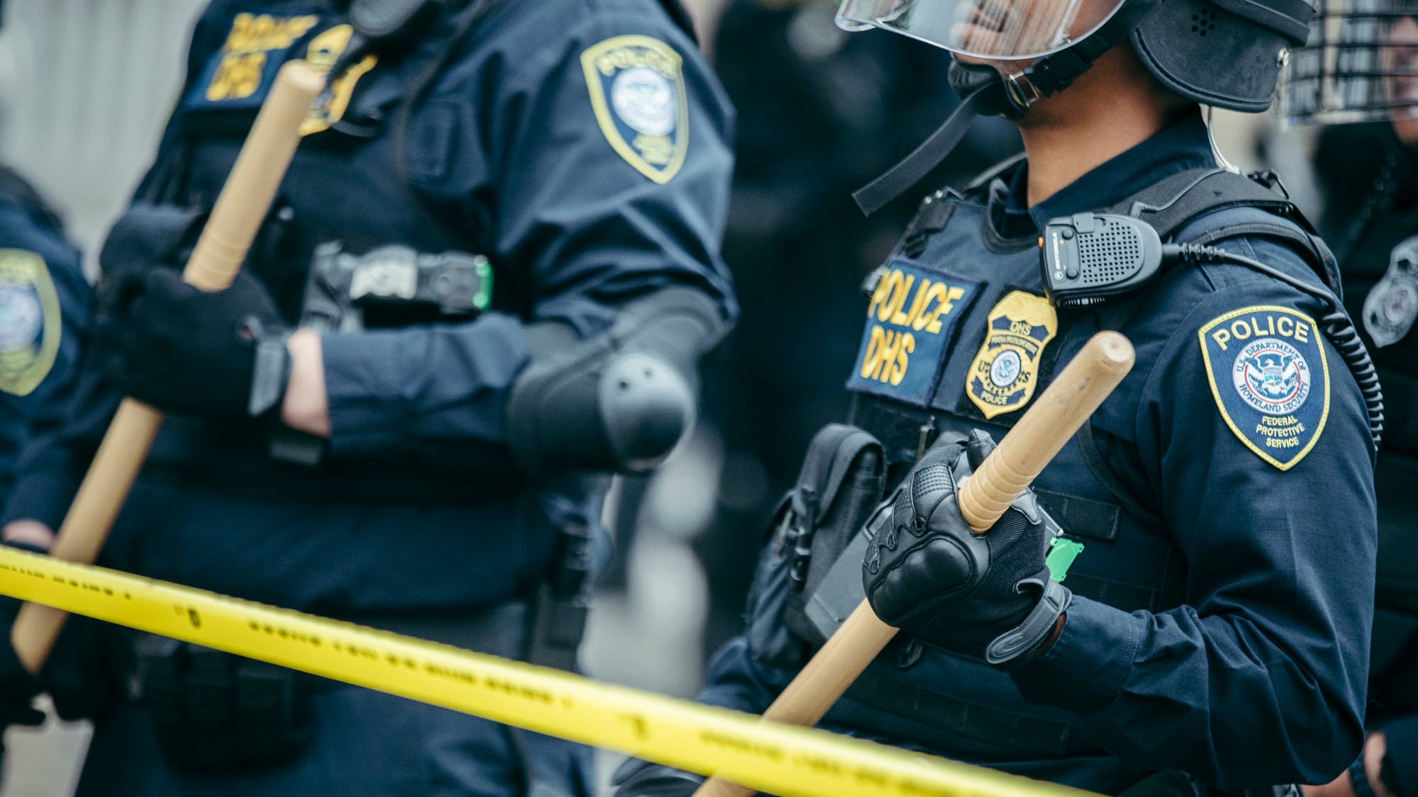 Federal Protective Services spokesman Robert Sperling said in a statement that other protesters had thrown "various items thrown at them including an unknown liquid, boards with protruding nails, and other items" at the officers.