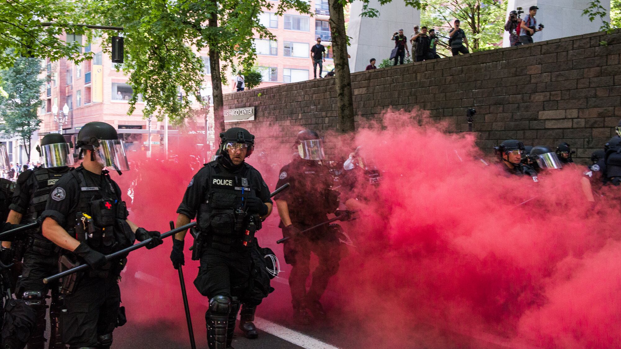 Antifa protesters argue that on at least five occasions in the past 18 months, Portland police have deployed force against left-leaning protesters, often while right-wing extremists cheered them on. Outlaw says the police response is a direct response to protesters' actions—that is, attempts by anarchists in the crowd to injure cops.