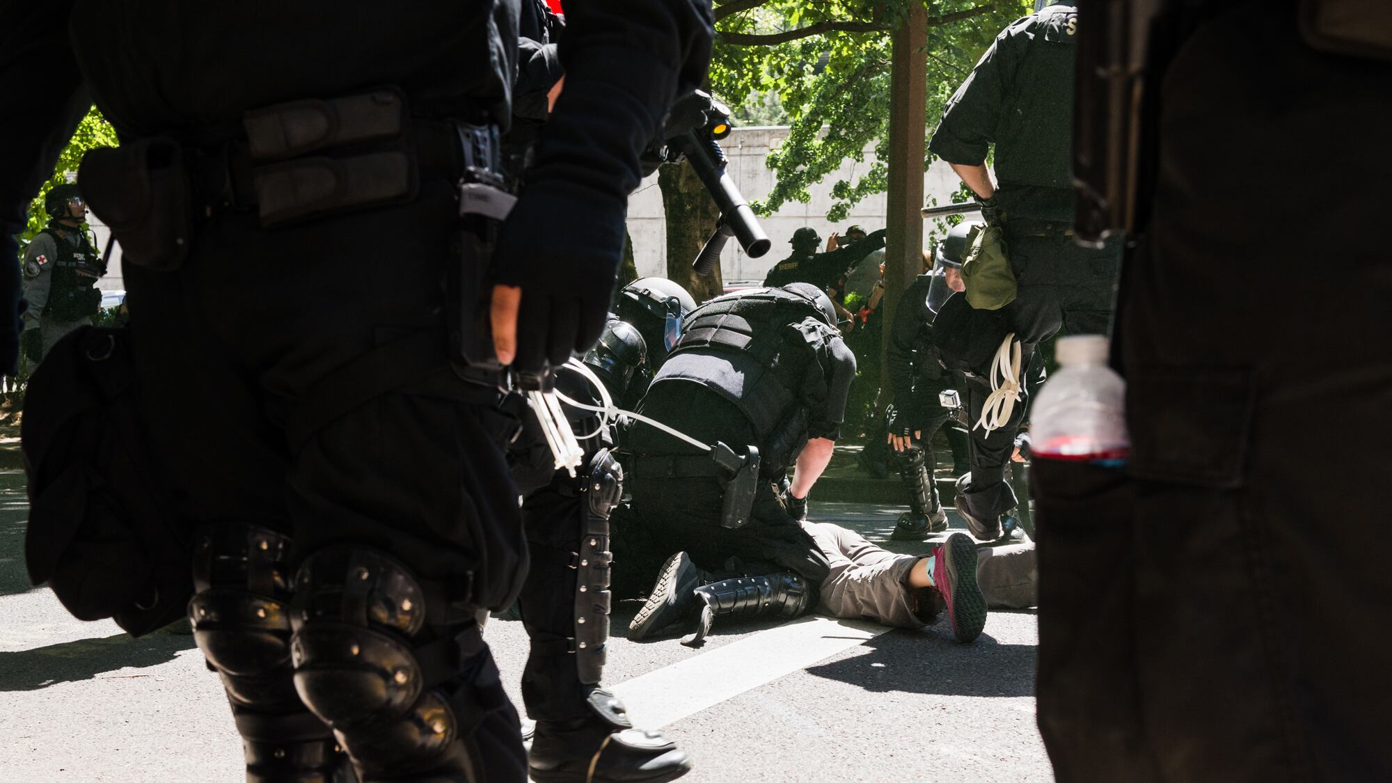 @PortlandPolice assaulting women in the streets for daring to question them. Is this community policing @tedwheeler? Your police department has become a cesspool. pic.twitter.com/UgS3MTJCl3