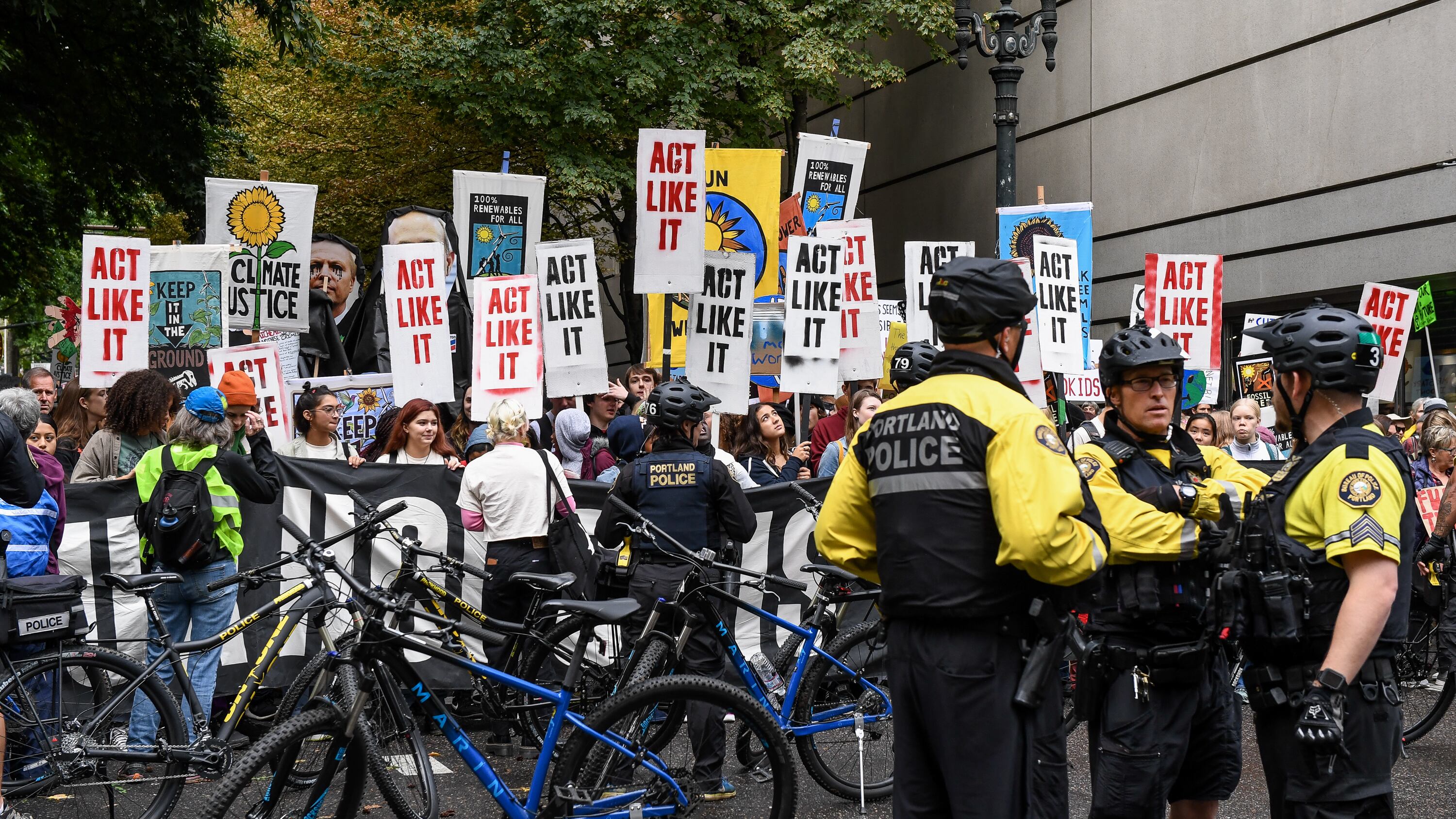 Portland police shoving their way through a group of peaceful young protesters to get to the only black teens in sight #ClimateStrike pic.twitter.com/3Ae3XN5OdM